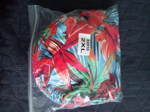 Ткань замечательная красивая яркая, качество пошива достойное, в общем всё хорошо. Одно плохо - нижняя часть подошла, а верхняя часть... придётся доработать.