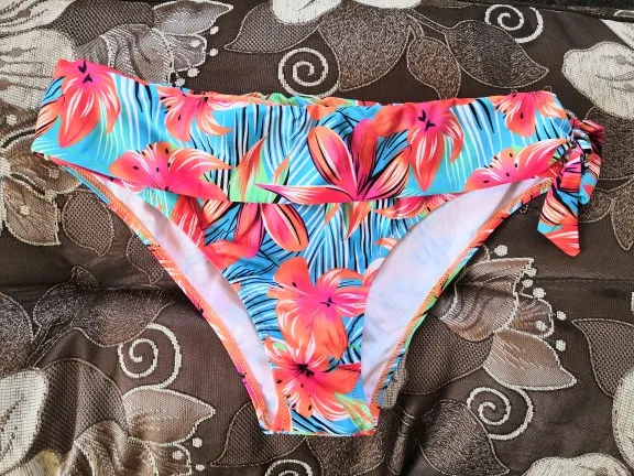 Очень красивый и яркий купальник. На российский 52- 54 размер сел хорошо. Продавцу большое спасибо за быструю доставку и качественный товар.