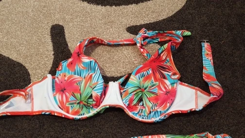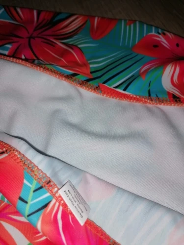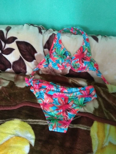очень понравился купальник. яркий, хорош о прошит, с внутренней стороны чашечку тоже ткань, вставки можно убрать. на размер 48 взяла XL, нормально. трусики высокие. рада покупке