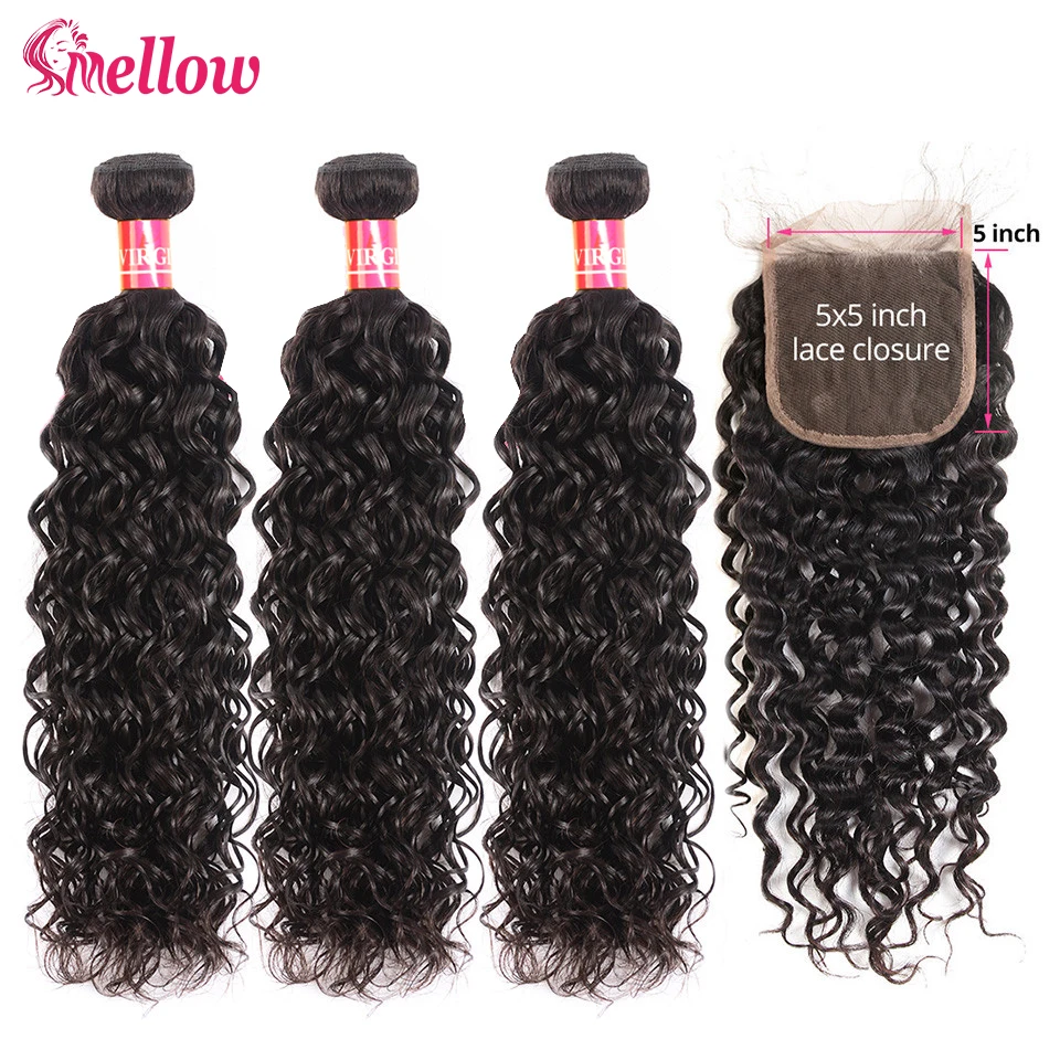 Волнистые пряди с закрытием бразильские вплетаемые волосы пряди с закрытием 5x5 закрытие мягкий человеческие волосы 3 пряди с закрытием