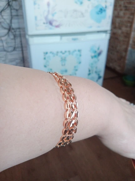 браслет красивый, на золото, конечно, не похож, но качественная бижутерия, на руке смотрится красиво, товар и продавца рекомендую.