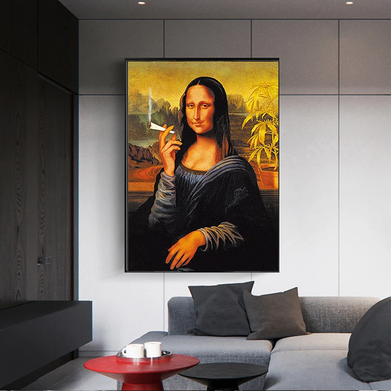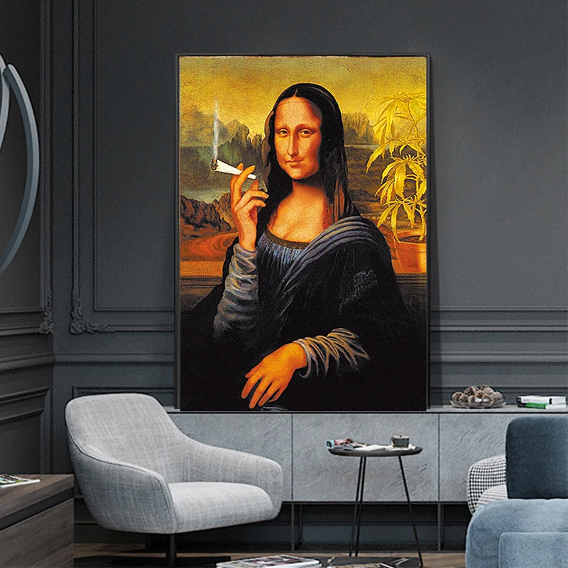 Картина маслом Мона Лиза, знаменитые плакаты г., забавное курение, принты на холсте, Настенная картина для гостиной, домашний декор