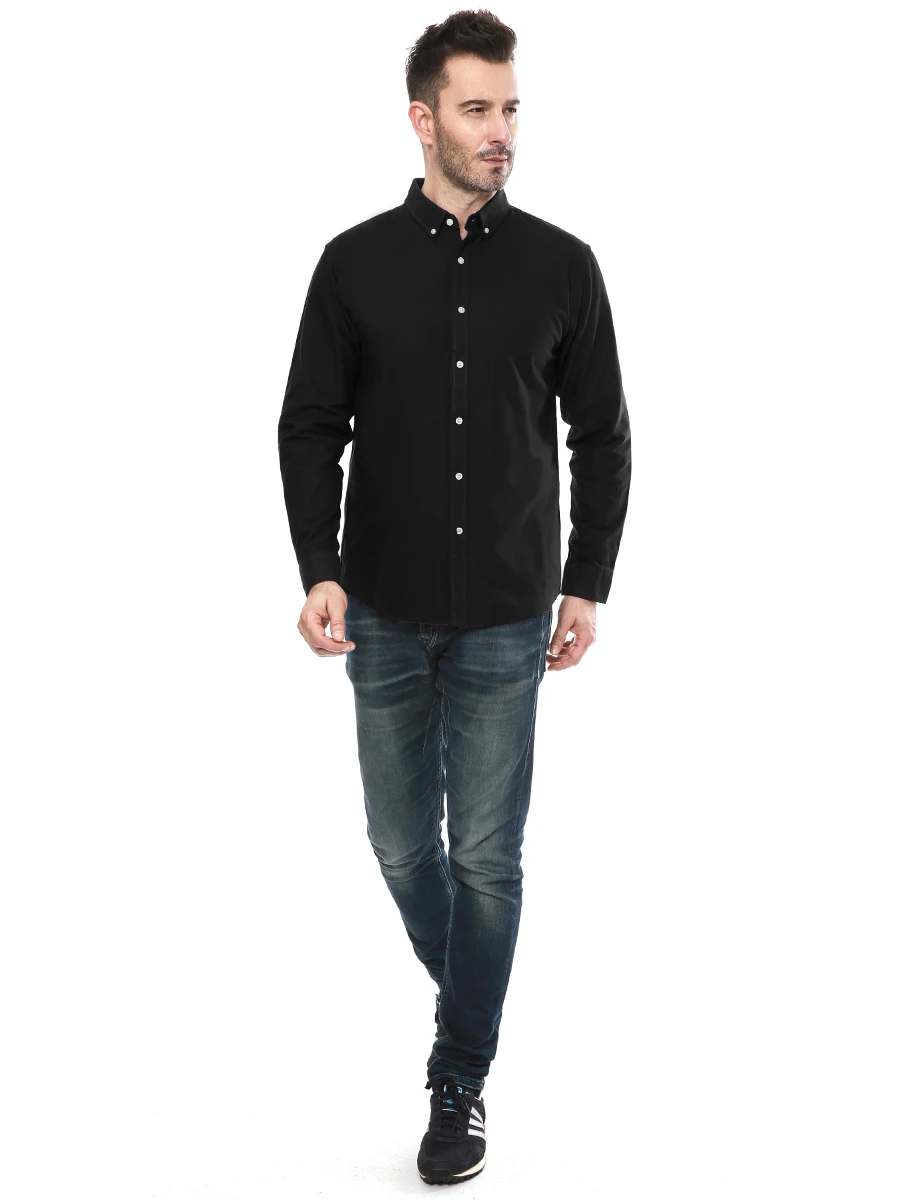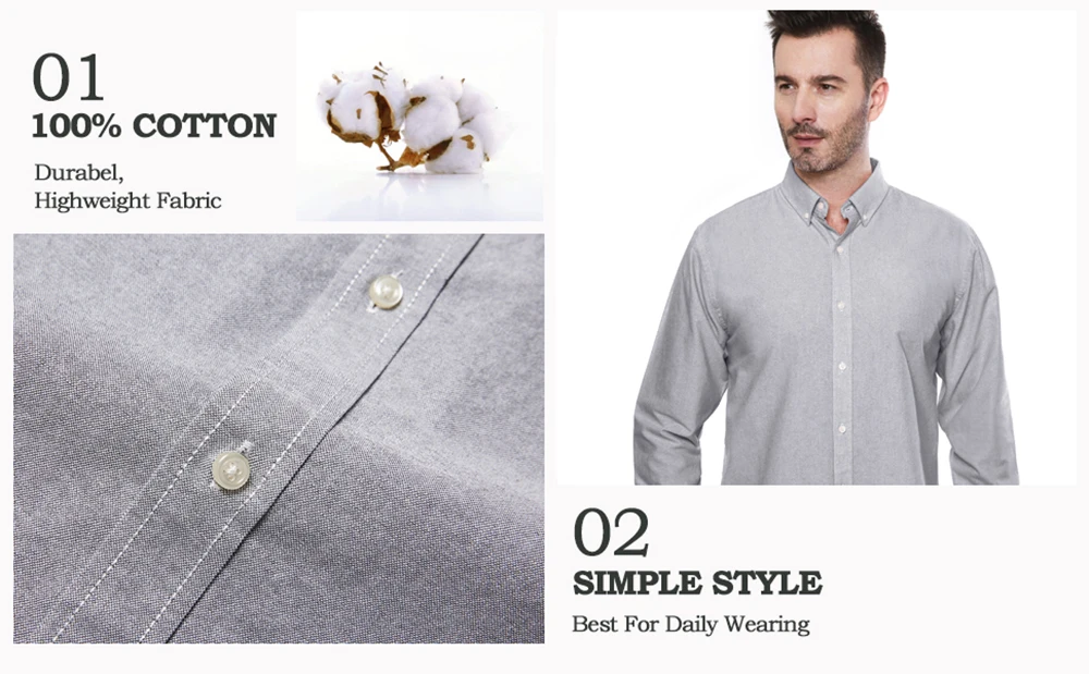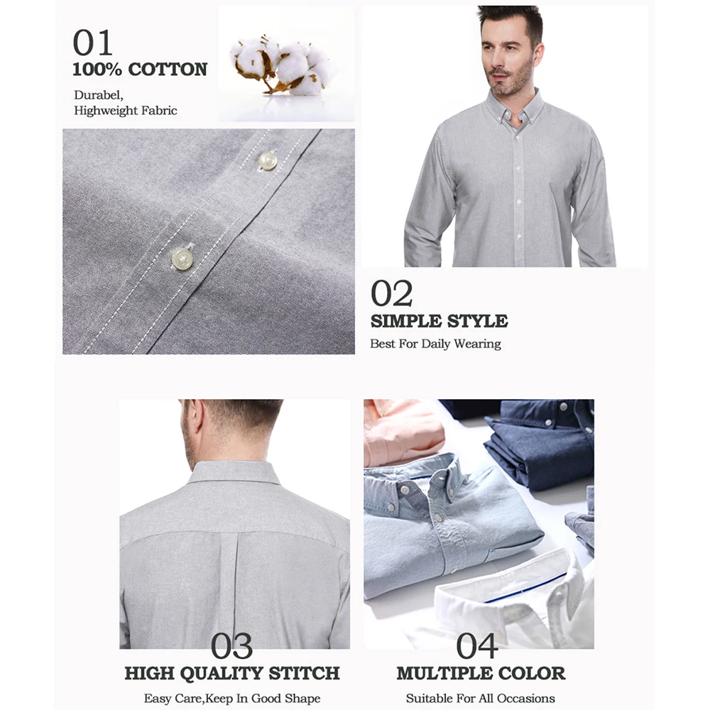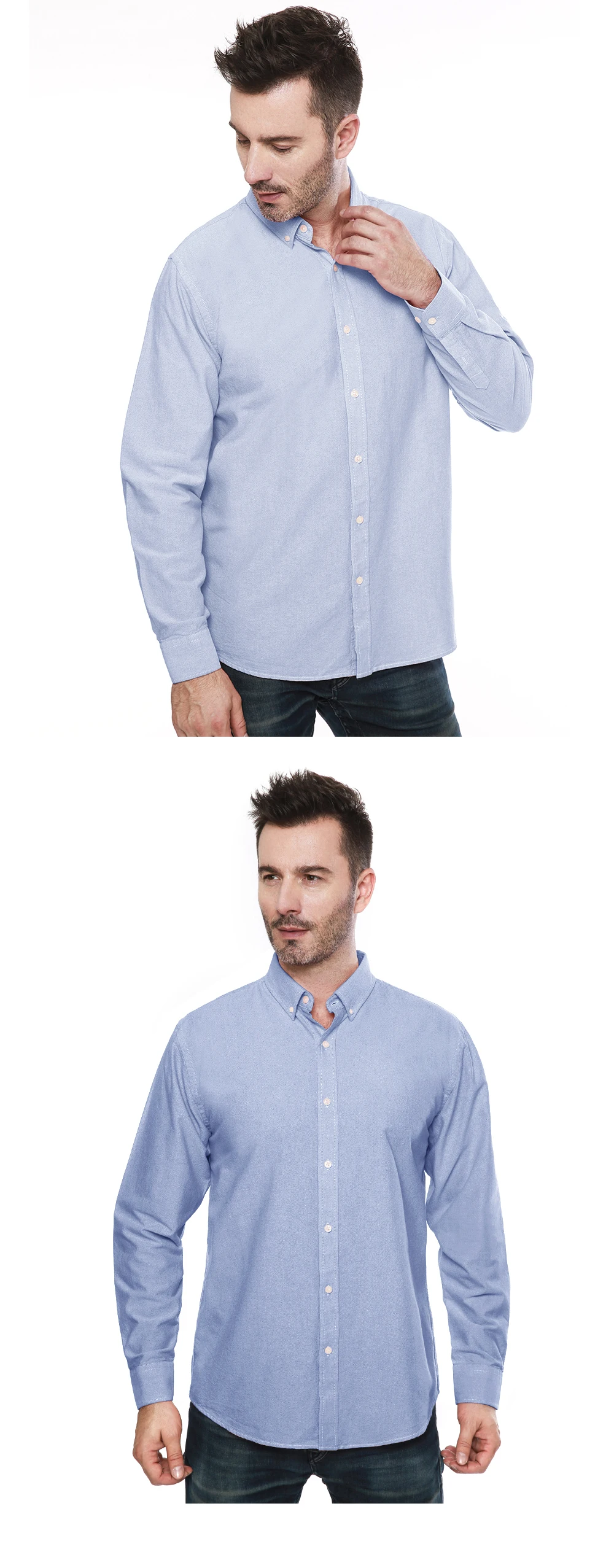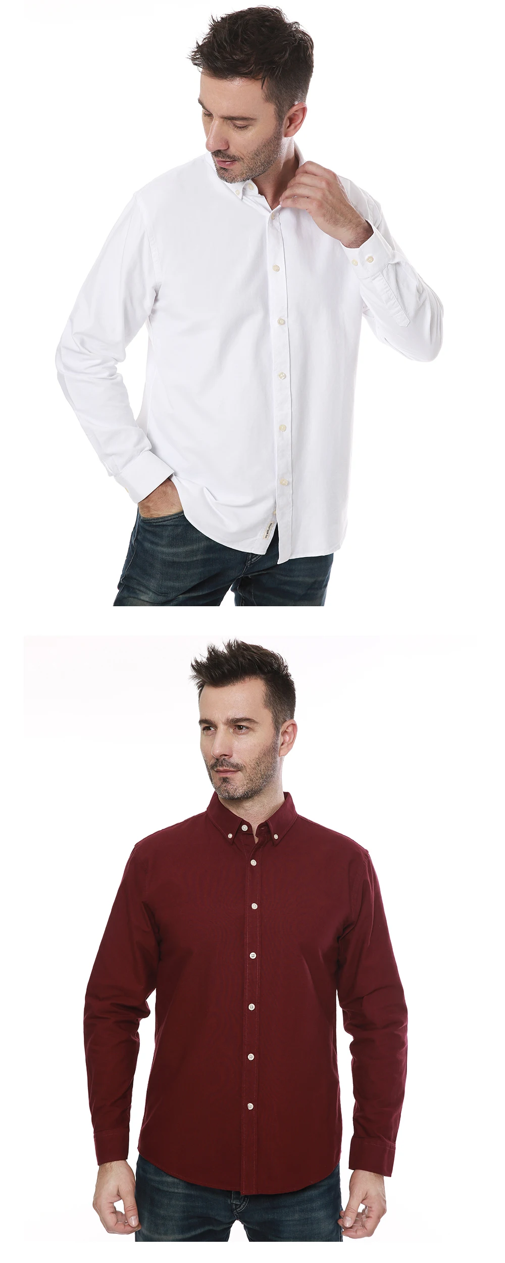 Мужская Повседневная рубашка из ткани Оксфорд, однотонная Удобная классическая рубашка из 100 хлопка с длинными рукавами и воротником на пуговицах