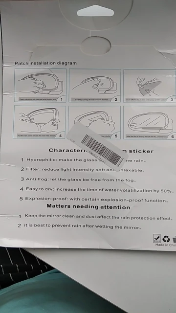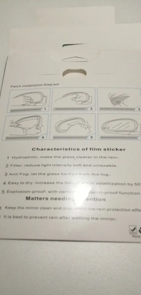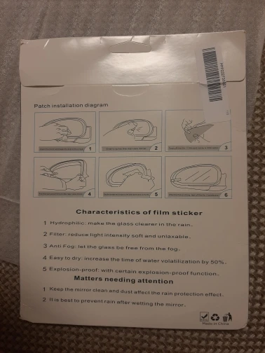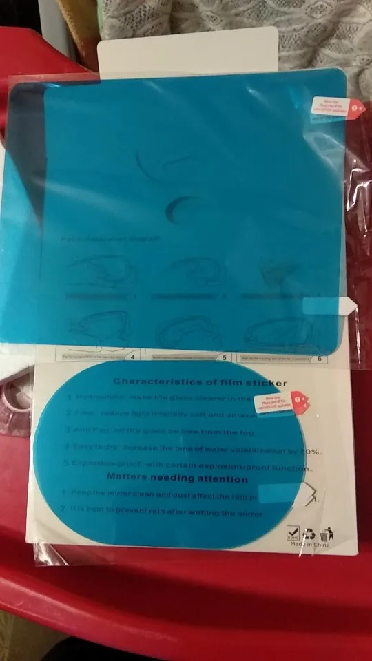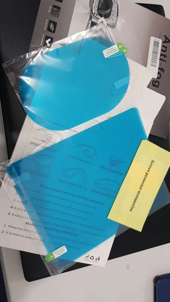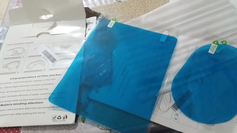 Видно в дождь немного лучше, чем без них. Эффект примерно как от "антидождя". Капли скатываются с поверхности. Клеим на обезжиренную и ровную поверхность (на сферу не подойдёт): 1.Отрывает сторону с цифрой один (этой стороной к стеклу). 2. Перед наклейкой немного нужно смочить поверхность. 3. Разглаживаем от центра к периферии. 4. Когда остатки воды выгнали подождите 2 минуты, а потом снимите защитную пленку под номером два. Всем удачного использования.