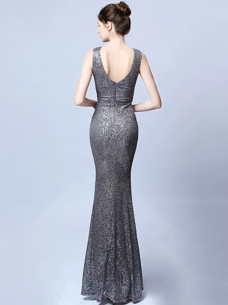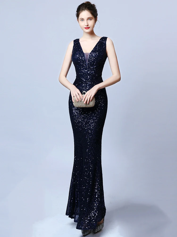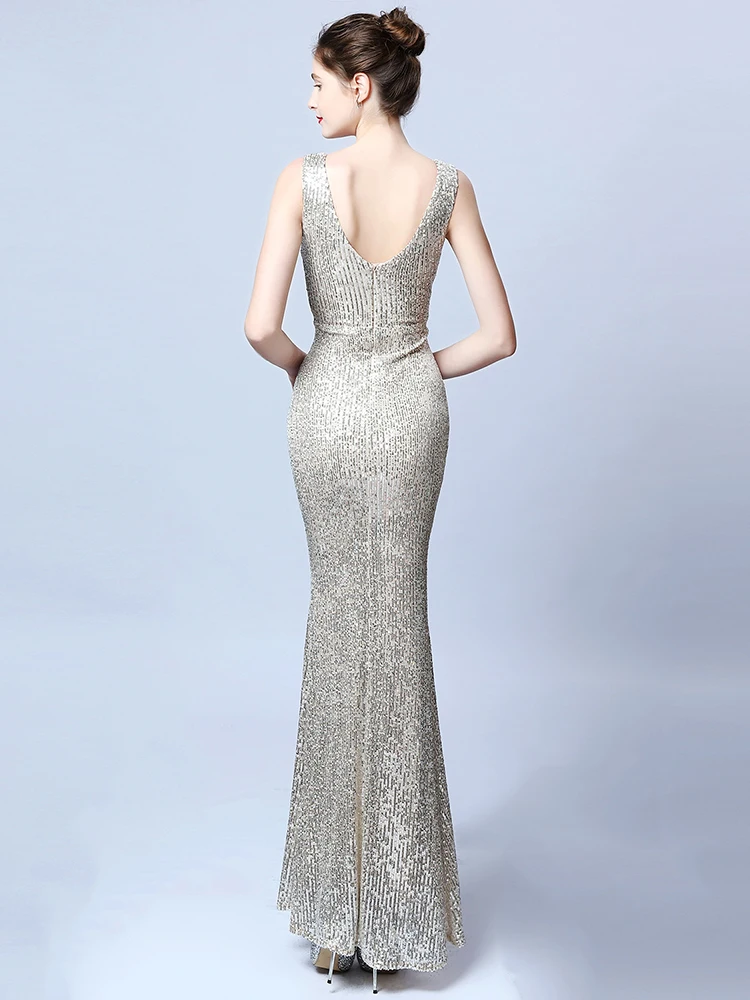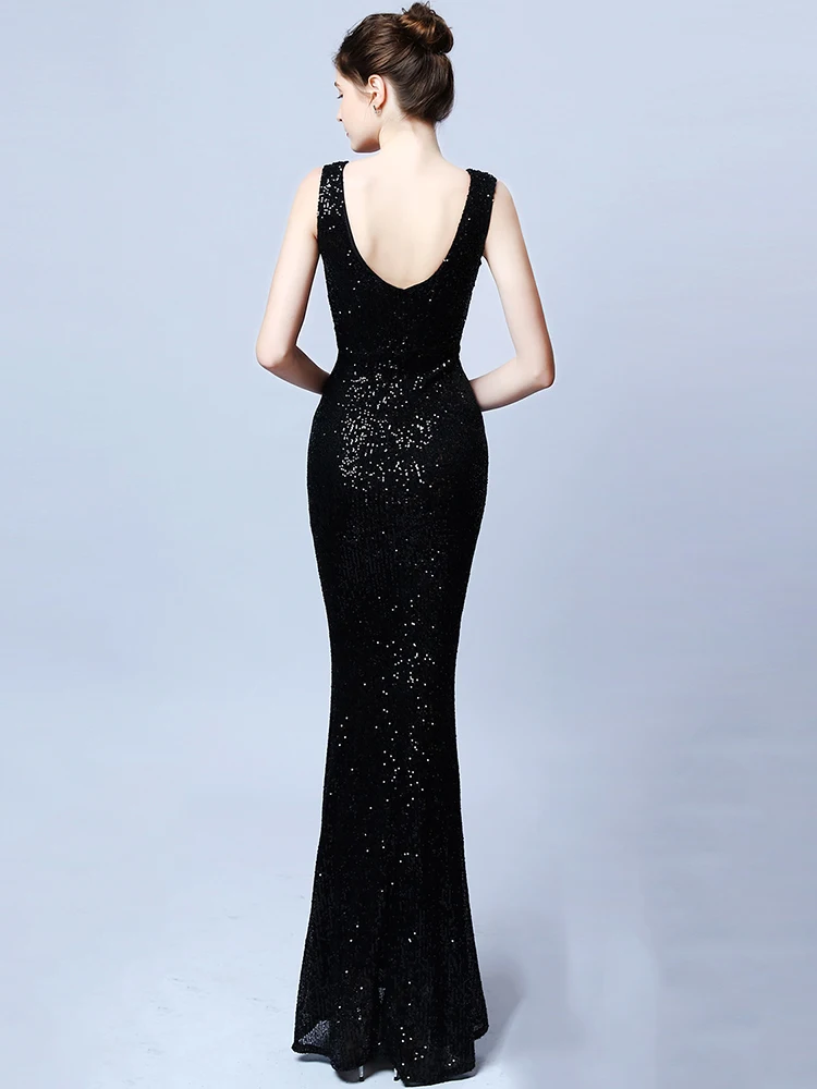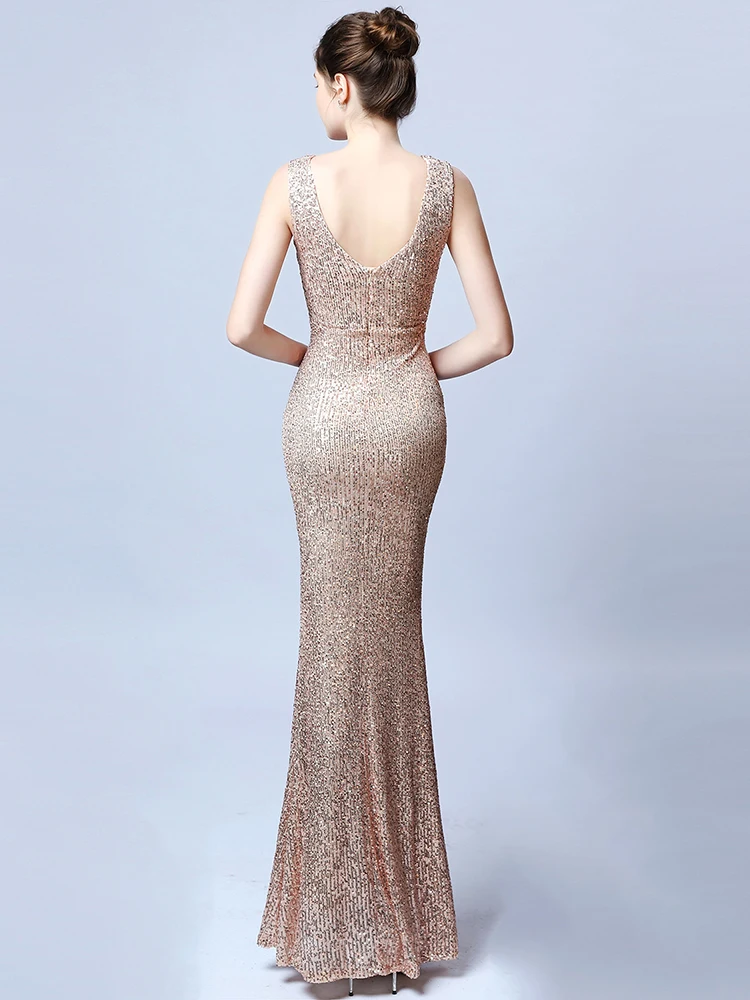 Длинное вечернее платье без рукавов с v-образным вырезом и пайетками; Элегантное вечернее платье; Платье русалки для выпускного вечера; V-образный вырез; Вечерние платья; Новинка; XUCTHHC
