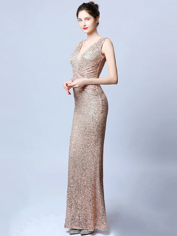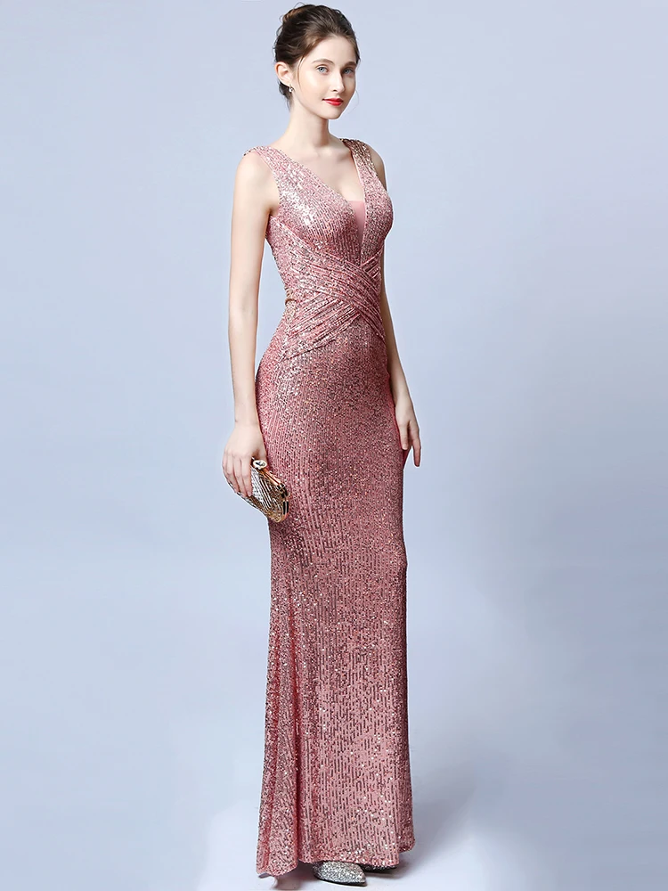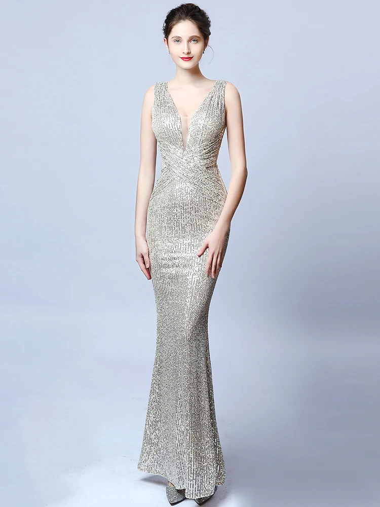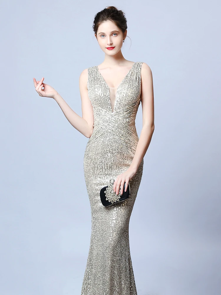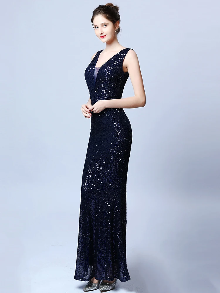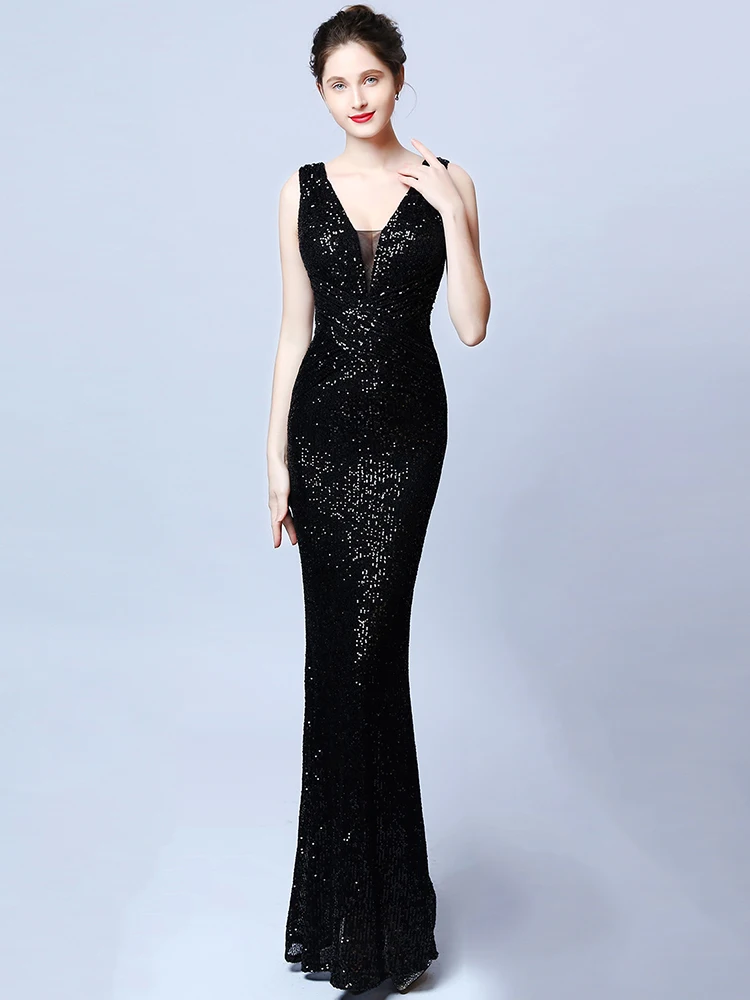 Длинное вечернее платье без рукавов с v-образным вырезом и пайетками; Элегантное вечернее платье; Платье русалки для выпускного вечера; V-образный вырез; Вечерние платья; Новинка; XUCTHHC