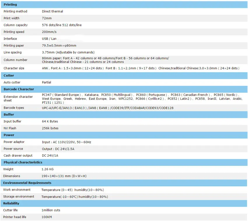 Новое поступление 80 мм автоматический резак чековый принтер POS принтер USB порт или Ethernet порт o для молочного чая магазин