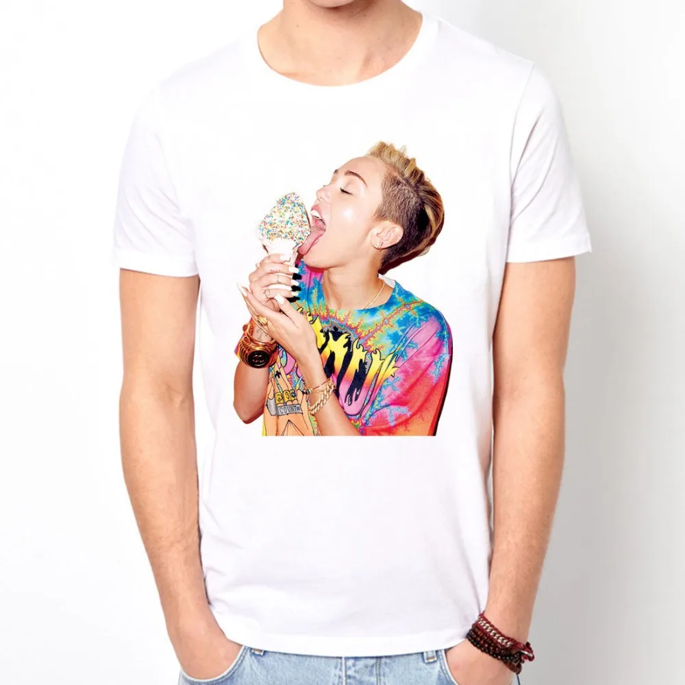 Майли Сайрус мороженое музыка TWERK футболка BANGERZ мужские вечерние белые футболки 100% хлопок