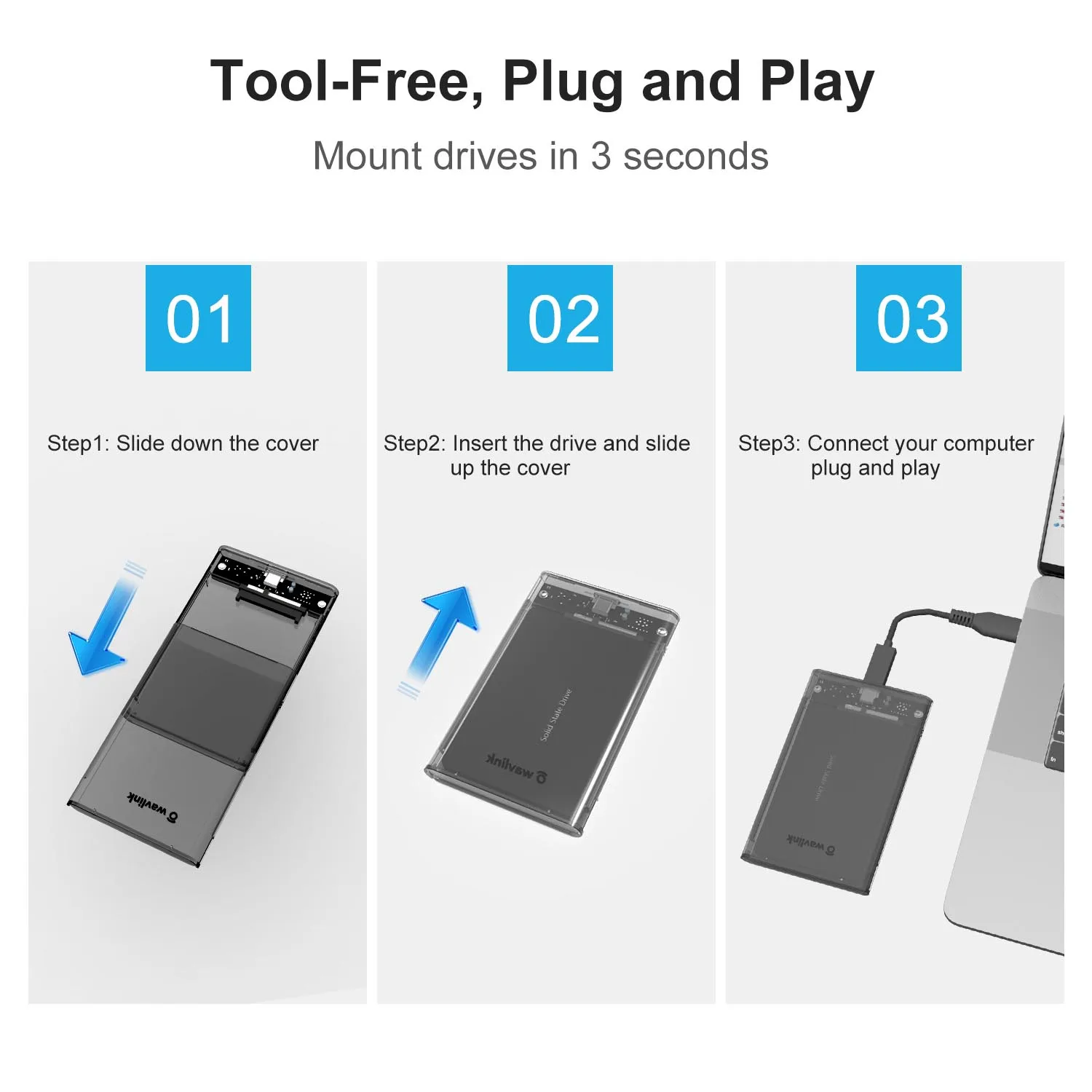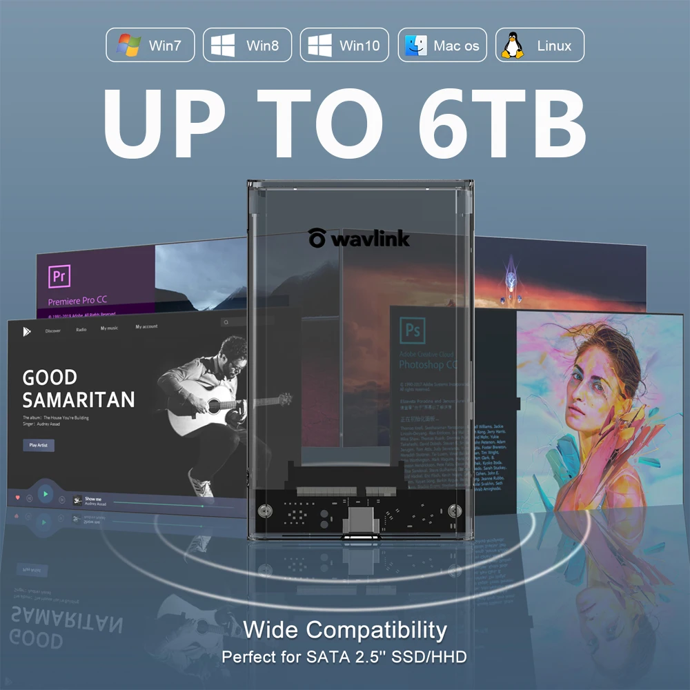 Wavlink HDD чехол SATA к USB 3,0 жесткий диск коробка для 2,5 "HDD SSD до 4 ТБ 5 Гбитс Внешний HDD корпус UASP протокол чехол