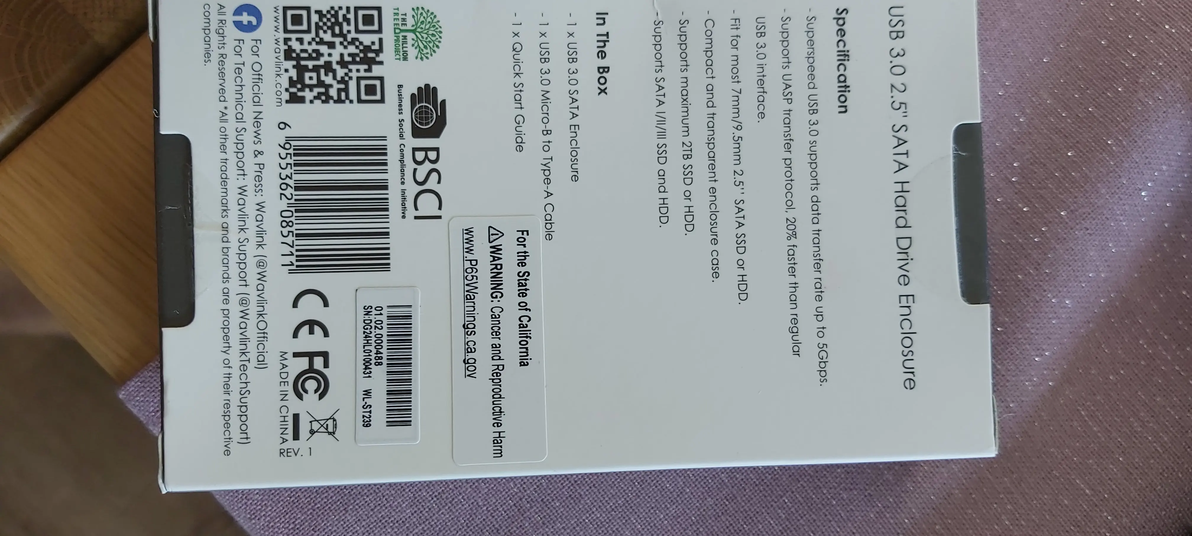 Я очень доволен магазином и всем процессом производства и доставки. Тем не менее, чехол не очень хорош. Очень трудно открыть корпус после того, как вы разместили жесткий диск внутри, несмотря на описание, говорящее, что это легко. А также материал корпуса (акриловый корпус) недостаточно хорош. У меня есть другие продукты из wavlink, которые очень хорошего качества, но этот корпус, к сожалению, не имеет такого же качества. Я действительно не рекомендую.