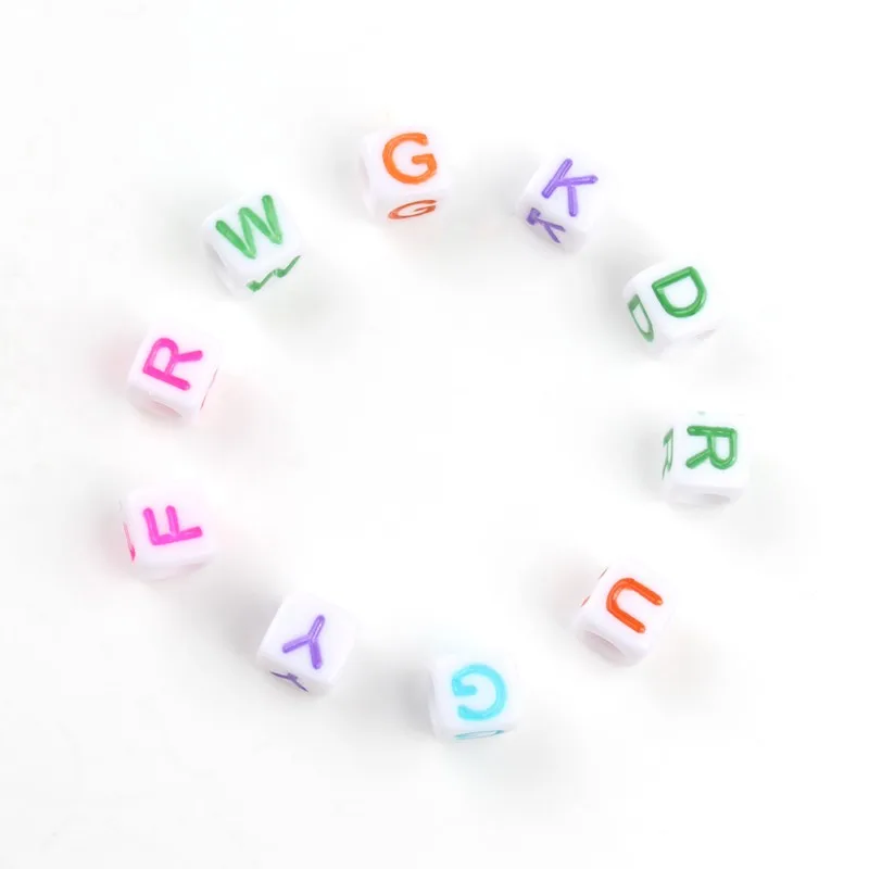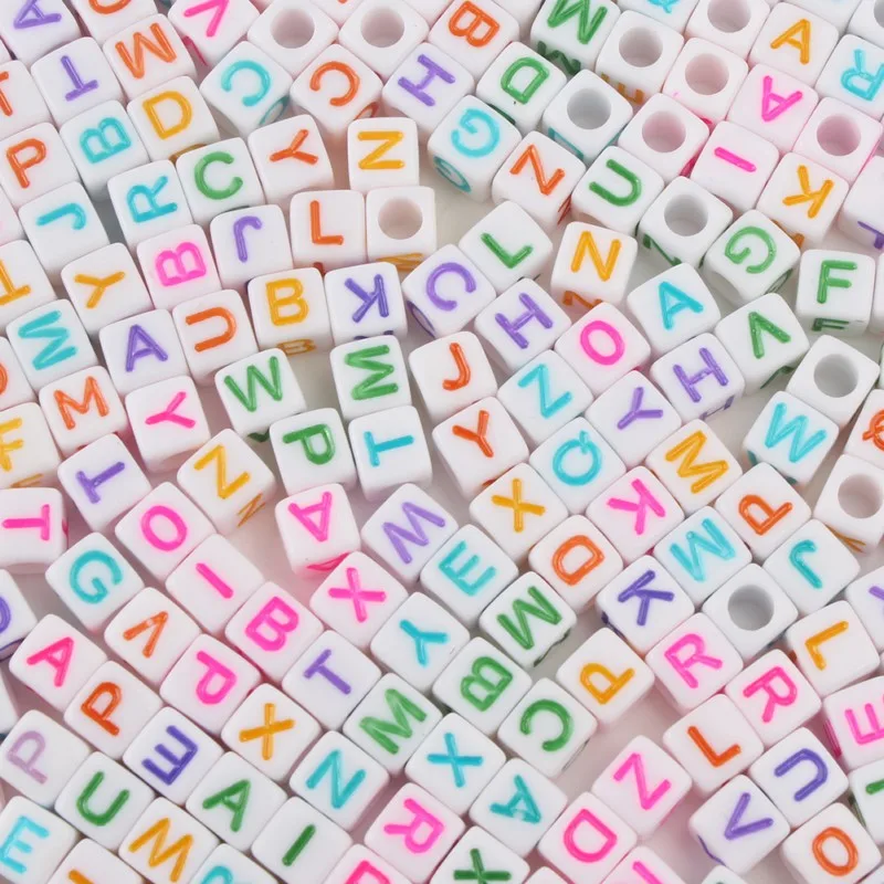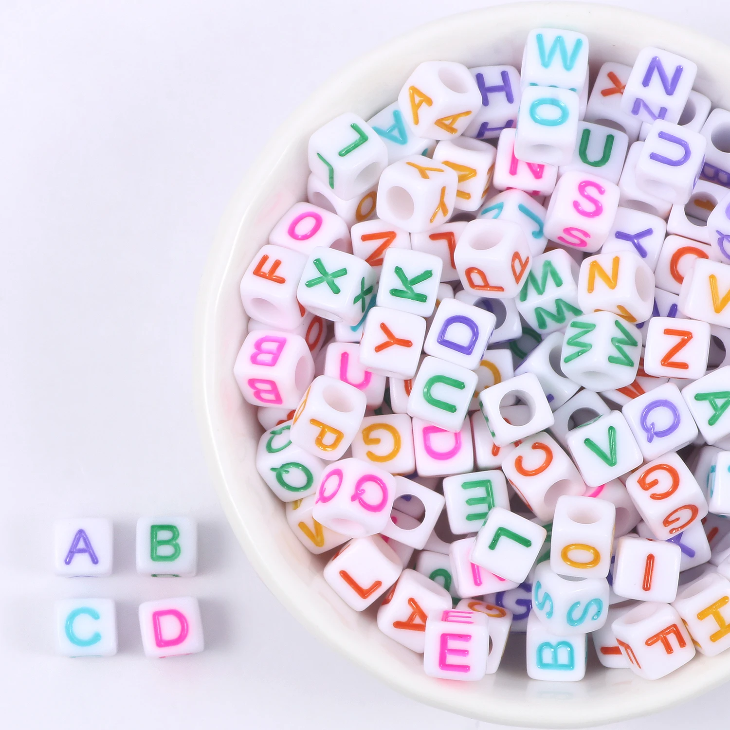 Разноцветные буквенные бусины 6 х6 мм, 100200500 шт., акриловые бусины россыпью для браслетов сделай сам, аксессуары для изготовления ювелирных изделий, отверстие 0,35 мм