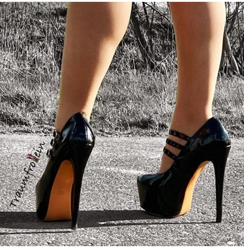 Женские туфли на платформе Onlymaker, туфли-лодочки с ремешком на щиколотке на шпильке 16 см, туфли на тонком высоком каблуке с классической пряжкой, черные, розовые, большие размеры