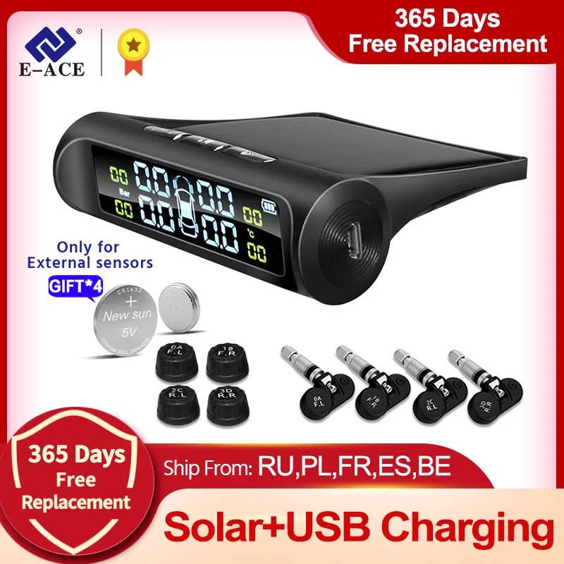 E-ACE Солнечный TPMS монитор для автомобильных шин датчик давления в шинах автоматическая система охранной сигнализации цифровой дисплей давление в шинах
