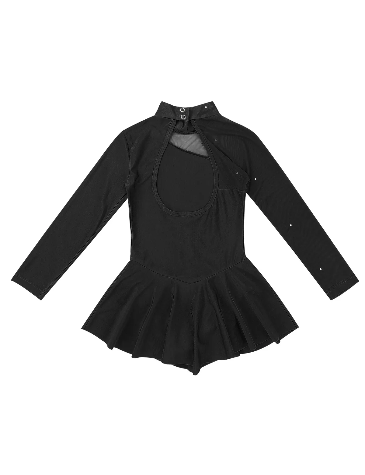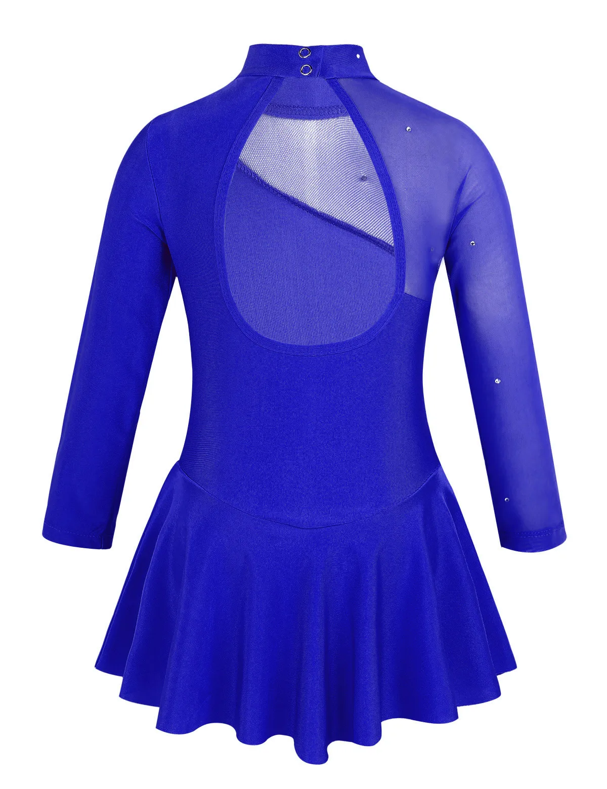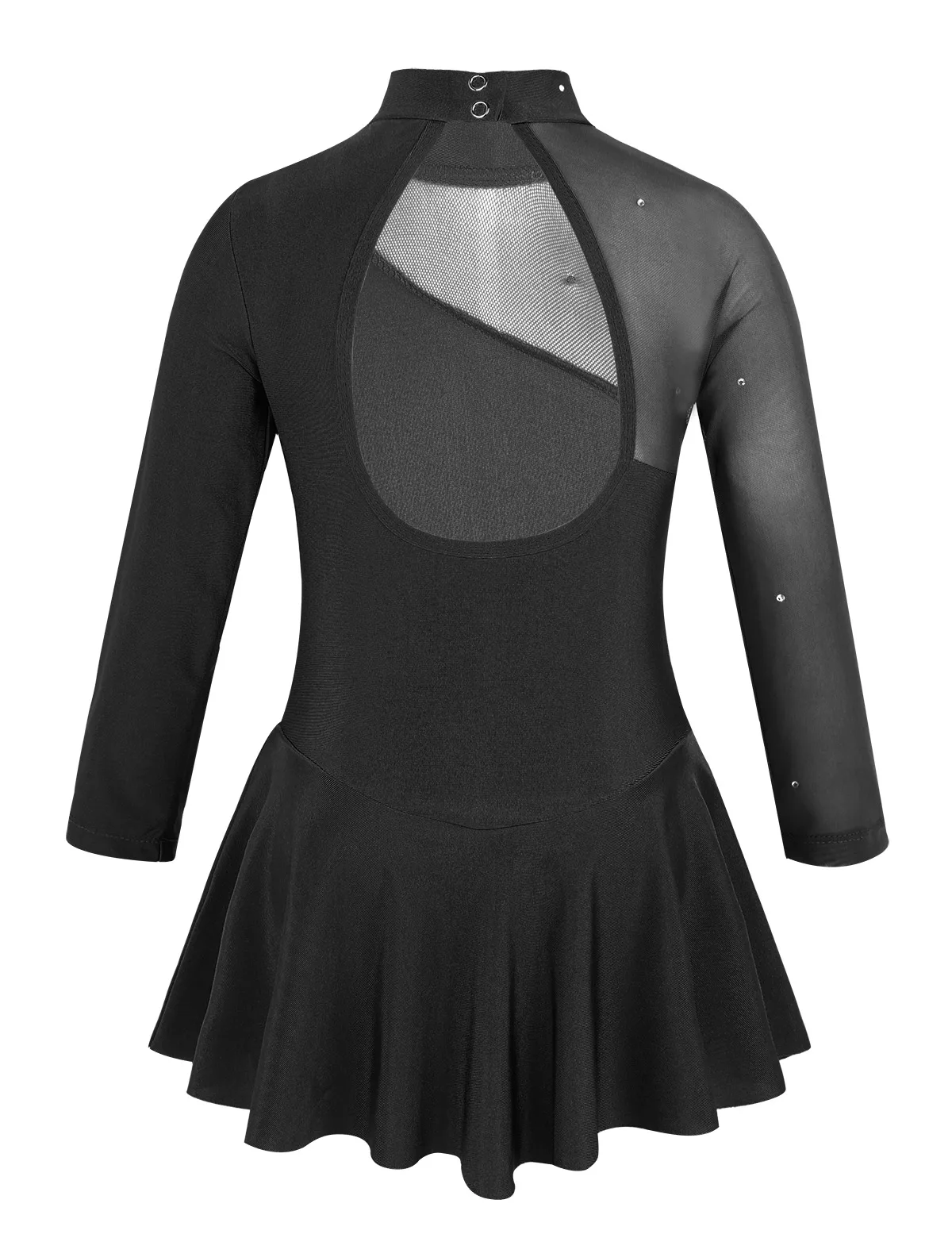 IEFiEL для детей платье с длинными рукавами для девочек с фатиновой юбкой и вырезами на спине для фигурного катания на коньках