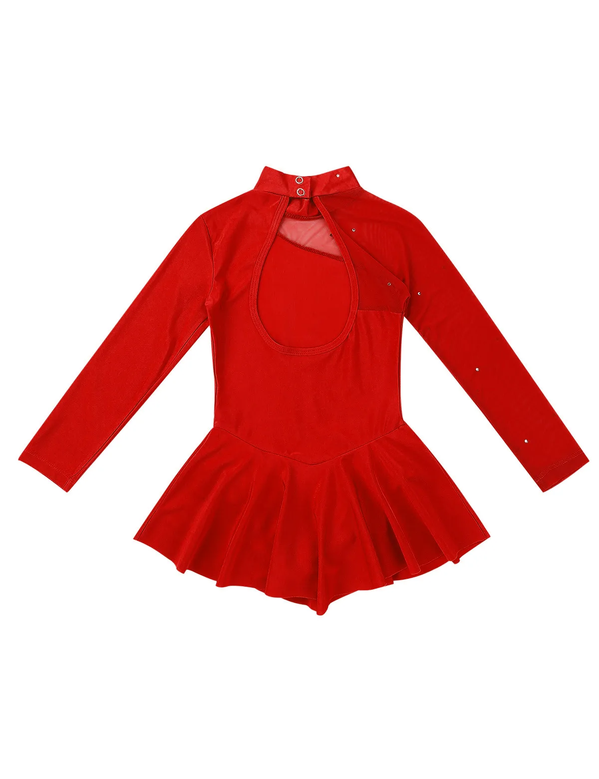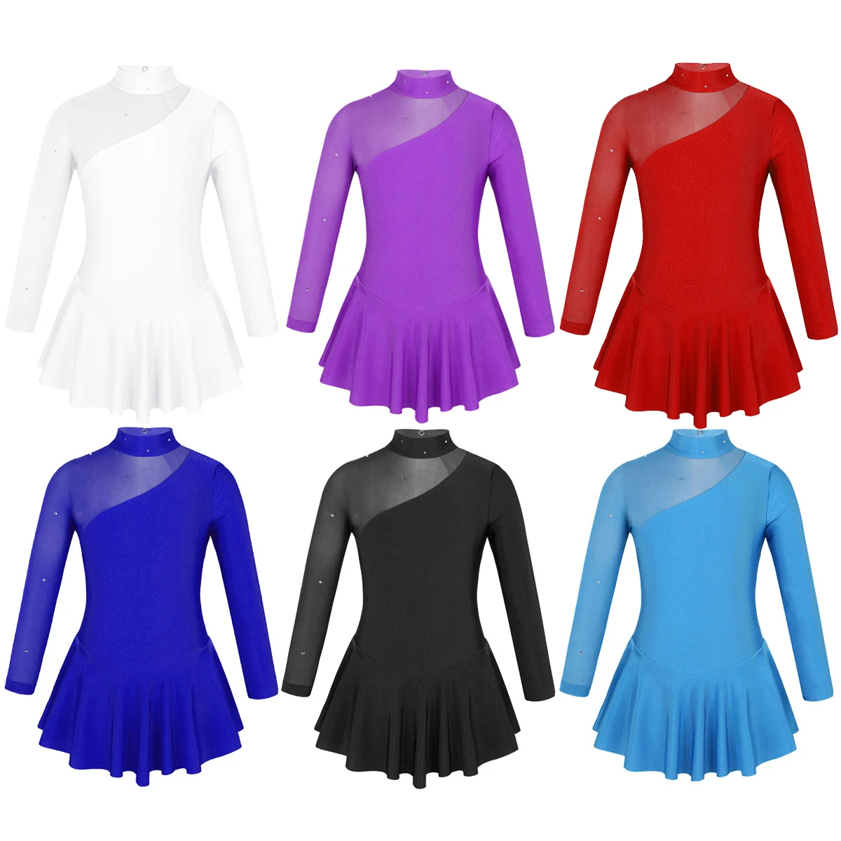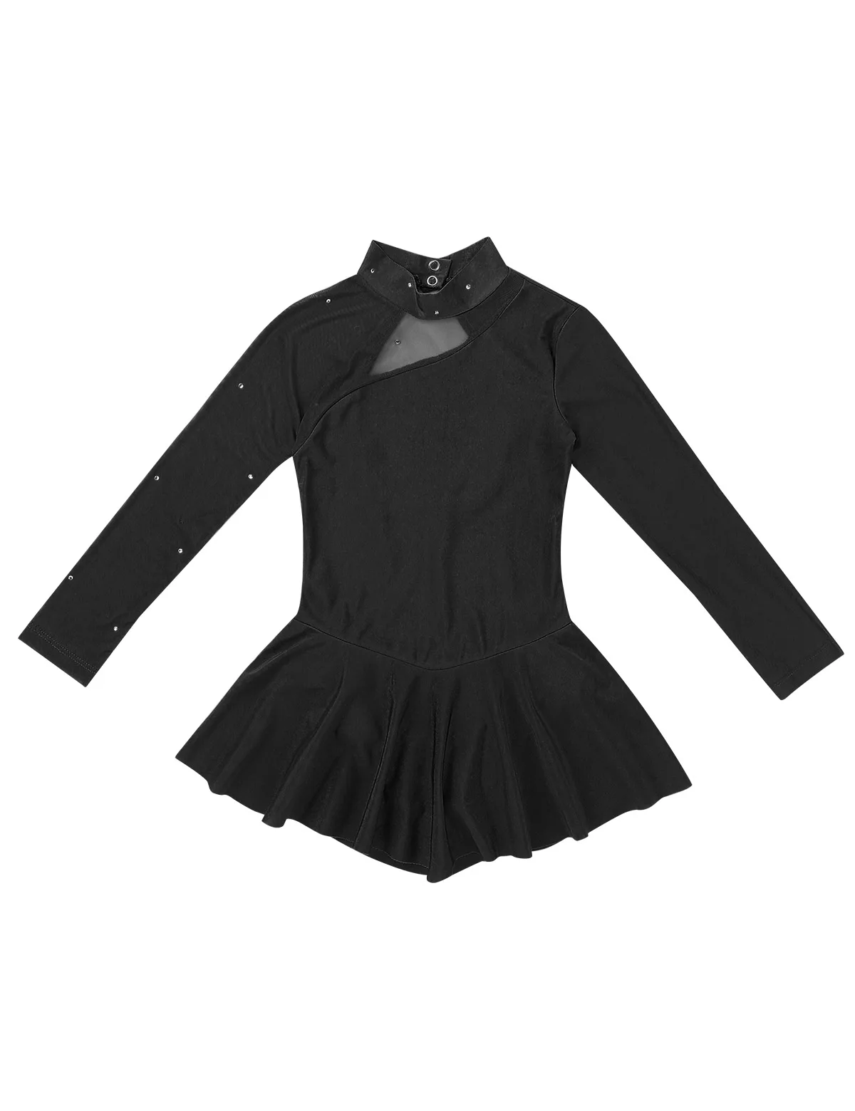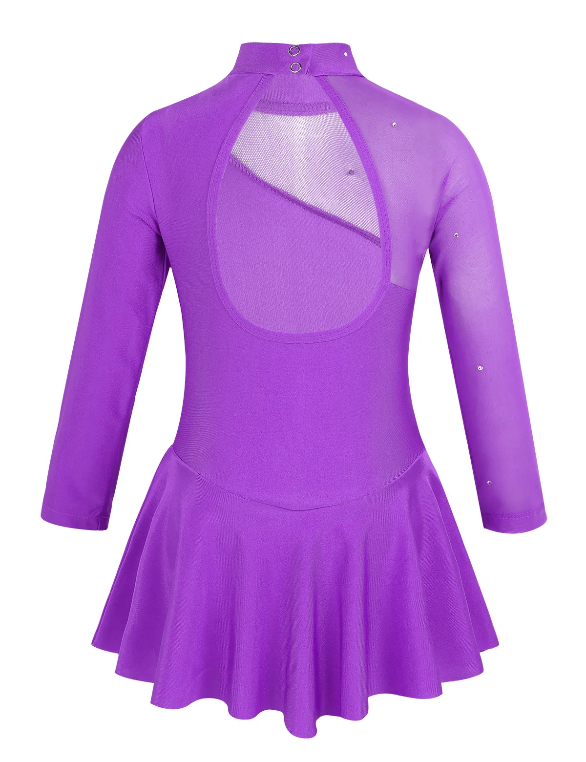 IEFiEL для детей платье с длинными рукавами для девочек с фатиновой юбкой и вырезами на спине для фигурного катания на коньках