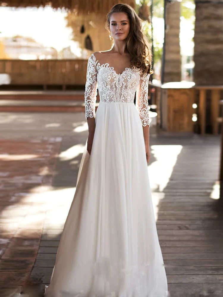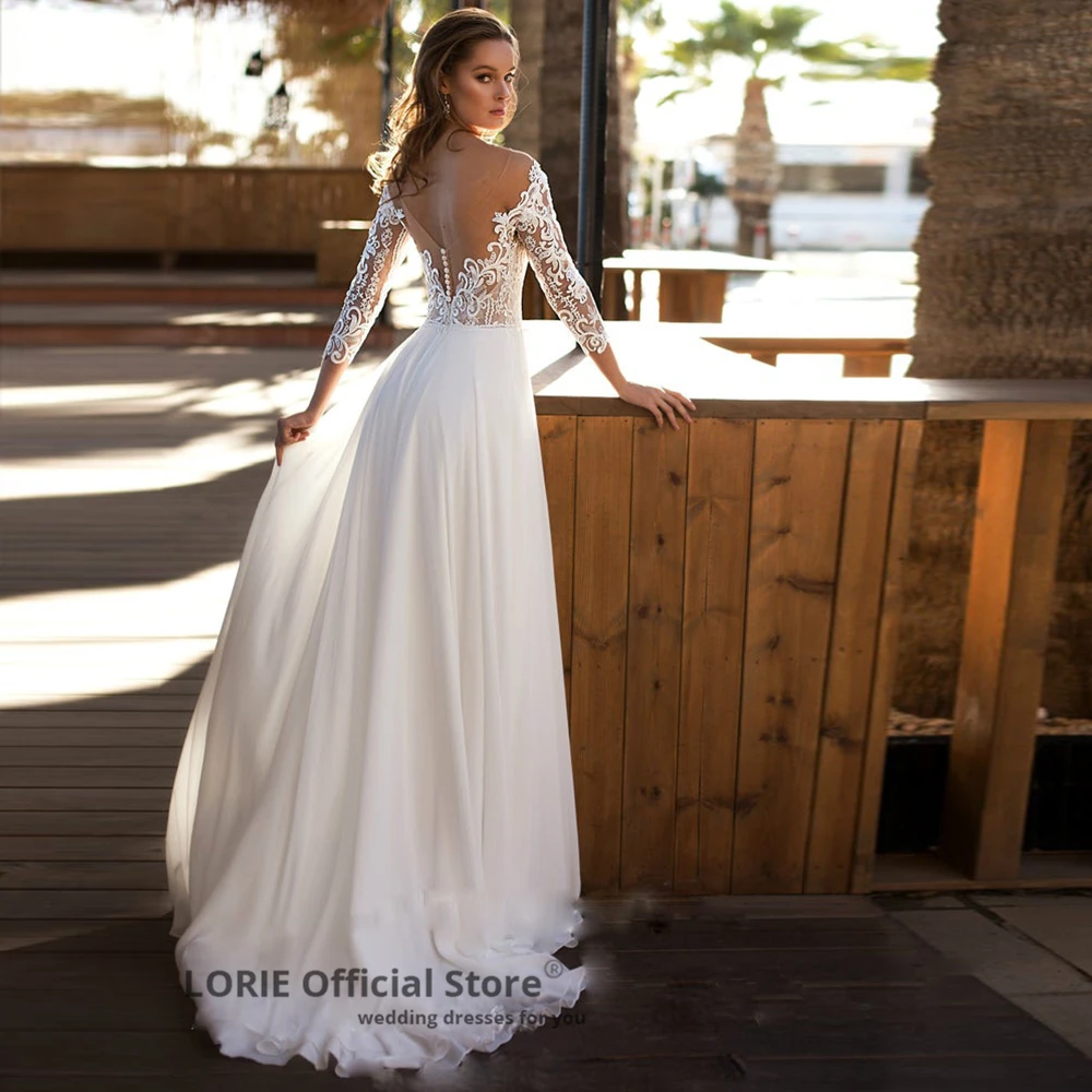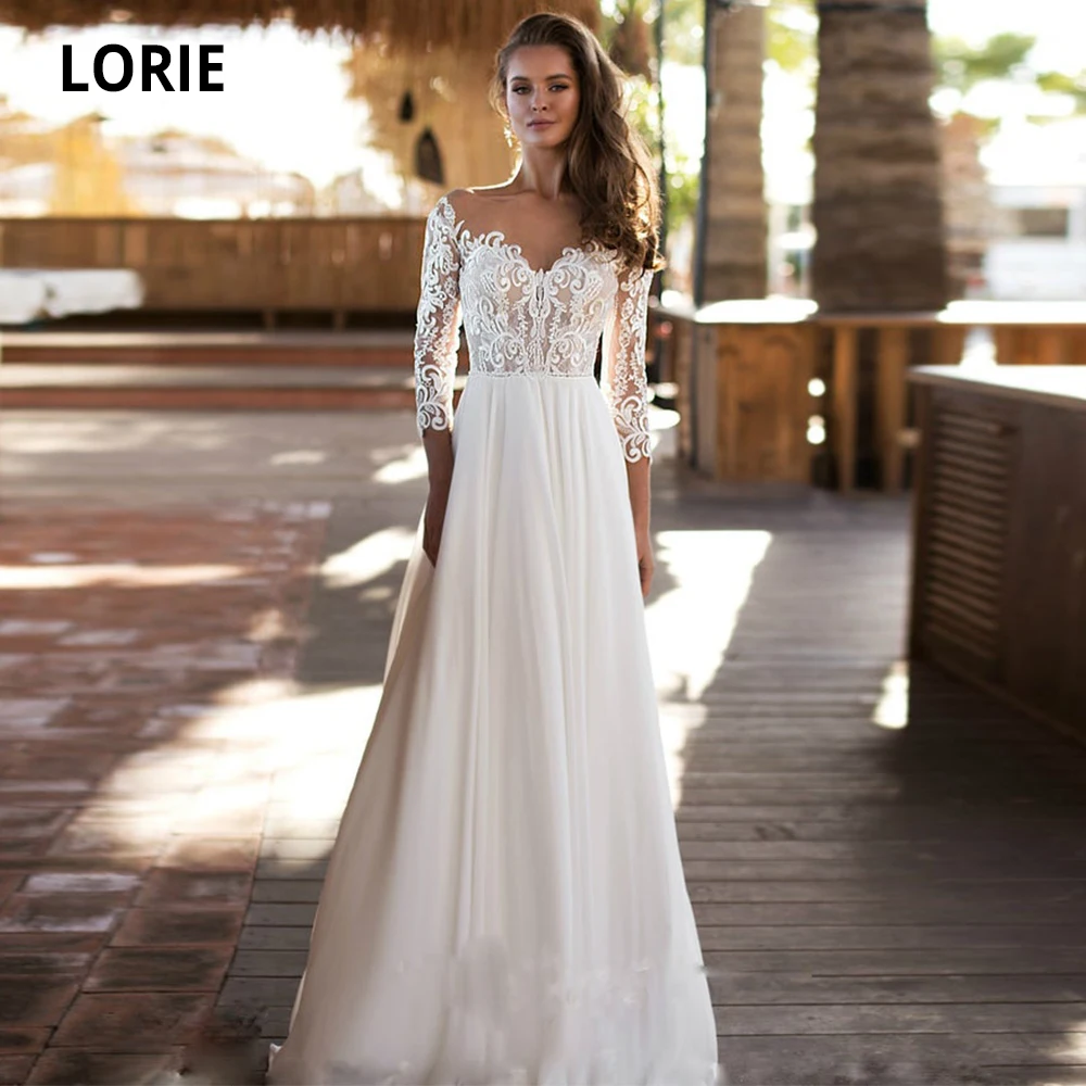 Элегантные кружевные свадебные платья LORIE с рукавом 34, шифоновые пляжные свадебные платья а-силуэта в стиле бохо 2020, свадебное платье принцессы, женское платье