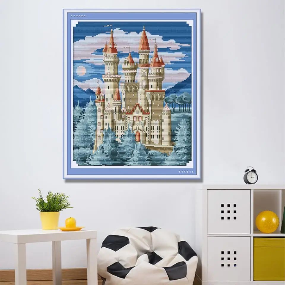 Набор для вышивки крестиком, хлопчатобумажная ткань с изображением синего замка, архитектурный пейзаж, DMC, белая ткань, вышивка, игла для рукоделия