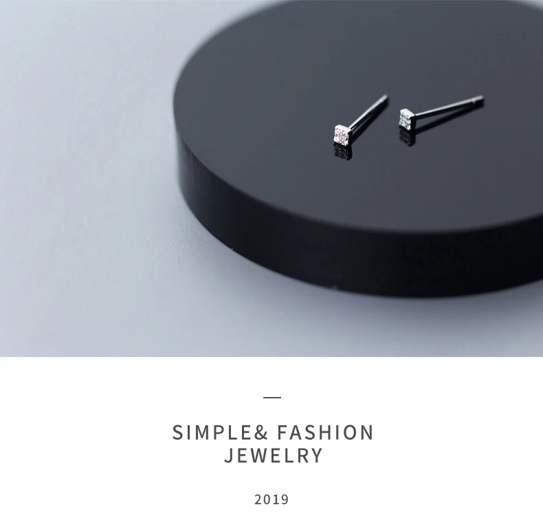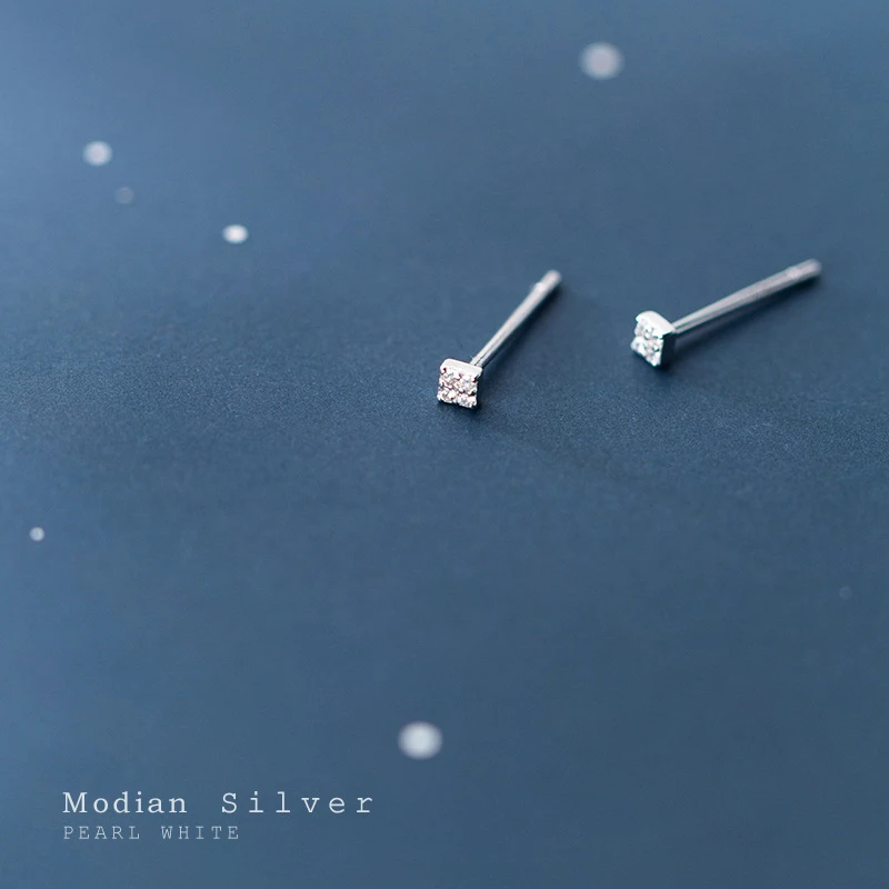 Серьги-гвоздики Женские квадратные из серебра 100% пробы с прозрачными фианитами