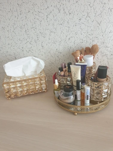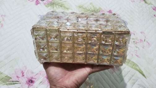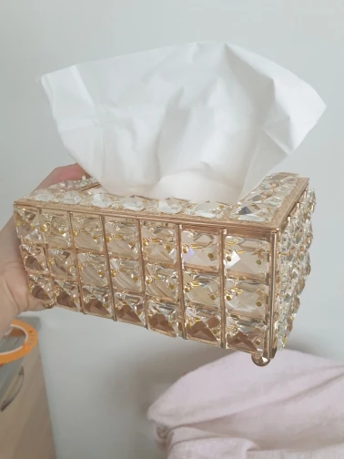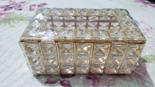 Очень красивый держатель для салфеток. Желаю, чтобы у него был какой-то крючок и глаза, чтобы крышка была закрыта. Цвет больше похож на золото, чем золото. В целом он блестящий и, кажется, сделан из хорошего качества.