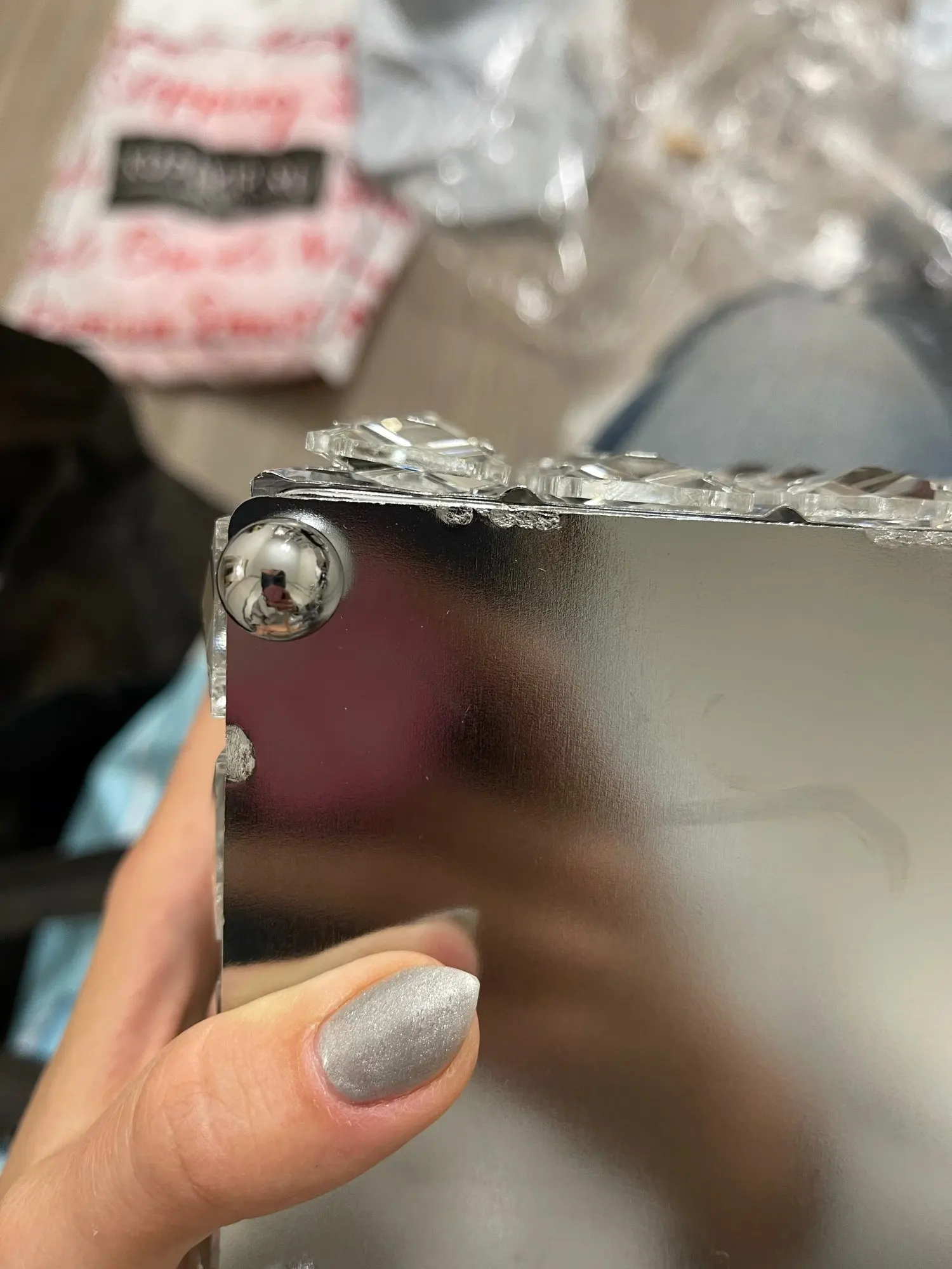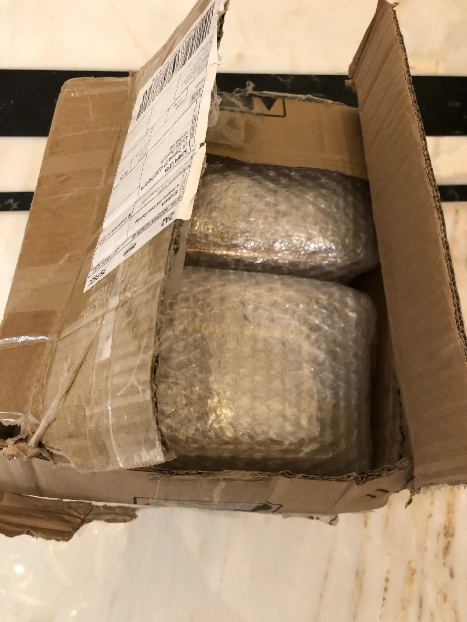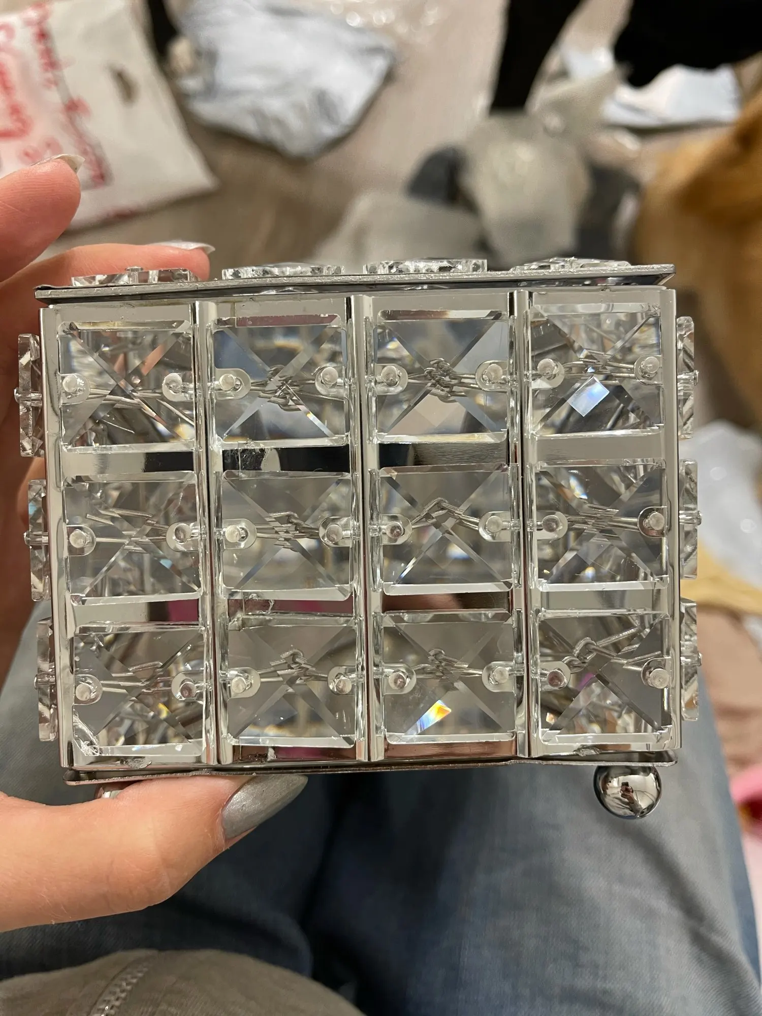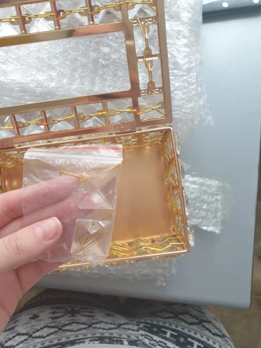 быстрая доставка, немного вмятины , но все целое, продавец положил "кристалы" на замену, спасибо большое продавцу, очень красивая вещь !
