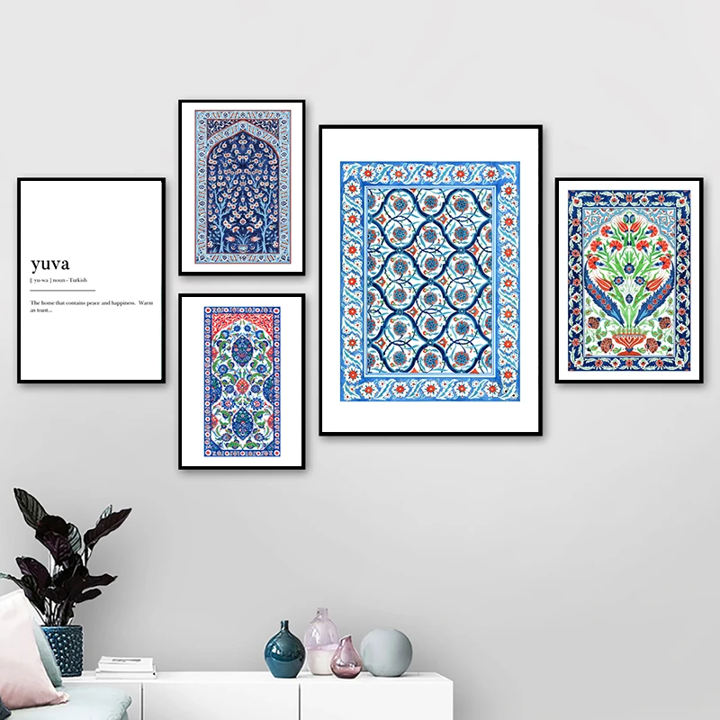 Турецкая плитка Древо жизни, рисунок акварелью, традиционная Османская Цветочная Настенная картина, холст, постер, домашний декор стен