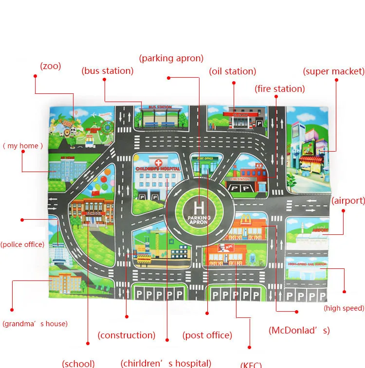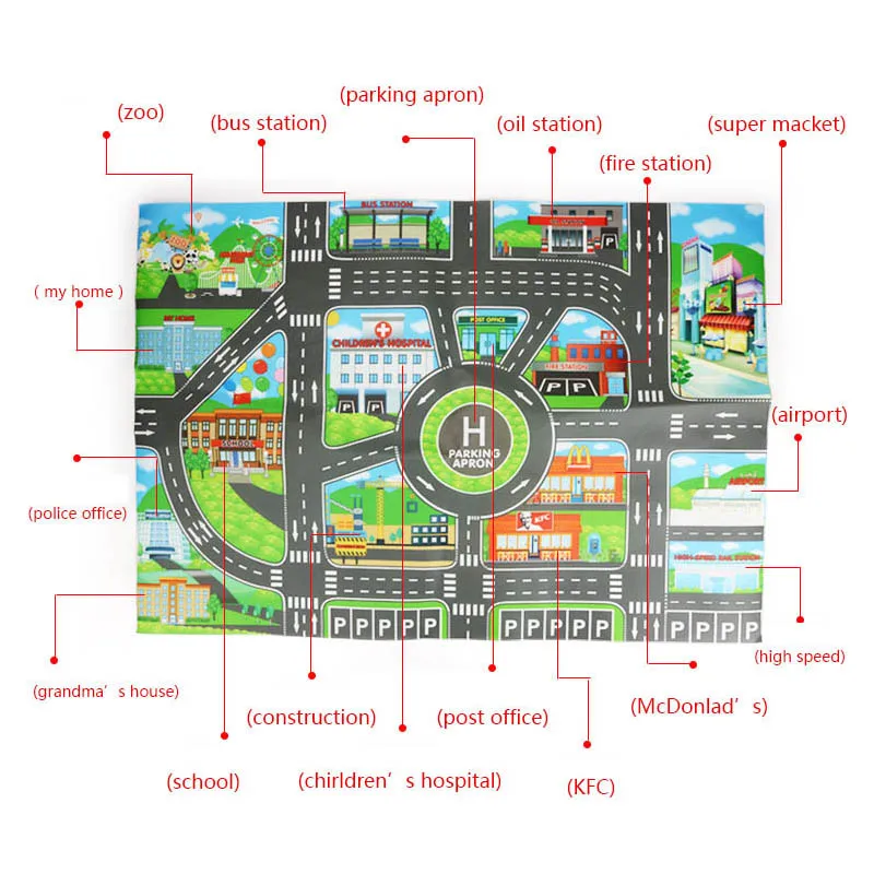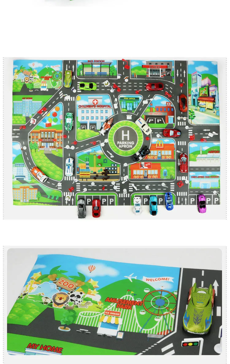 83x58 см, детские игровые коврики, дорожные знаки, автомобильная модель, парковочная карта с городом, без аксессуаров