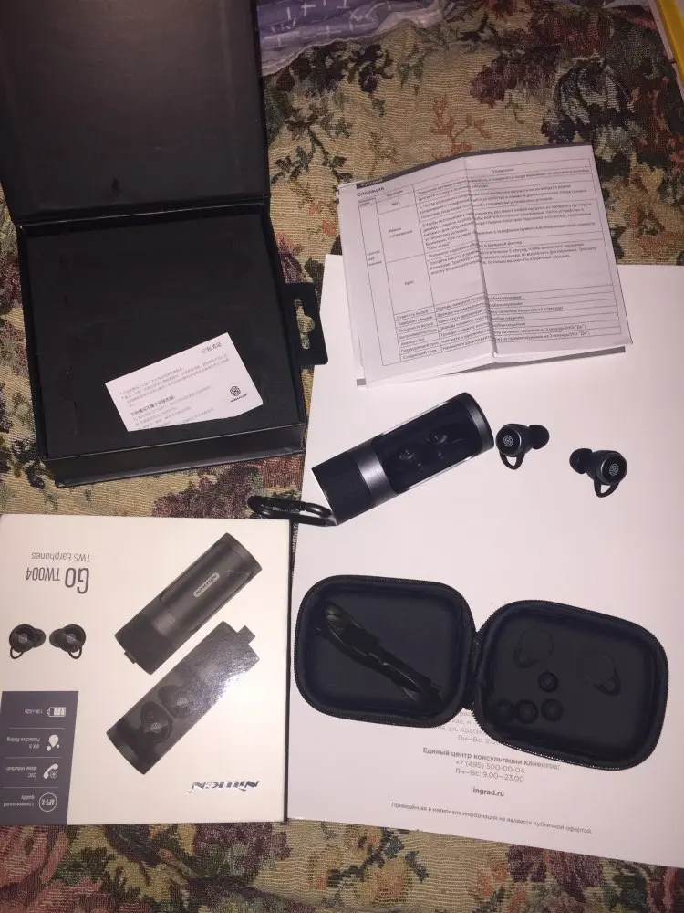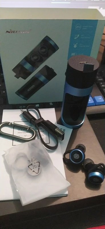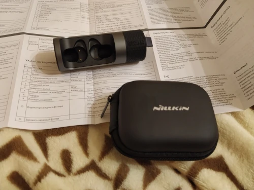Качество Nillkin, как всегда, на высоте. Приятность во всём. Кейс для наушников сделан оригинально. Коробка подарочная выглядит отлично. Дарить не стыдно. Продавец в подарок положил коробку под наушники проводные. Пригодится. Инструкция на русском. Говорят на английском. ЗВУК. AptX завёлся сразу. Громкости хватает с запасом. Подбирайте амбушюры из комплекта. Сильно меняет звук и комфорт в ношении. На средних амбушюрах, мне было утомительно слушать: звучали глухо, много баса, высоких нет, поддавливали терпимо уши. Был разачарован. Поменял на самые маленькие амбушюры - всё изменилось. Комфортно. Басс +20, высокие +80 в PowerAmp. Звучок на троечку. Можно попытаться вывести АЧХ эквалайзером, на сколько выйдет. Сцены нет. На улице и спортом заниматься пойдёт. Откровений не ждите. Научитесь вставлять наушник. Резиновый хвостик наушника должен смотреть назад.