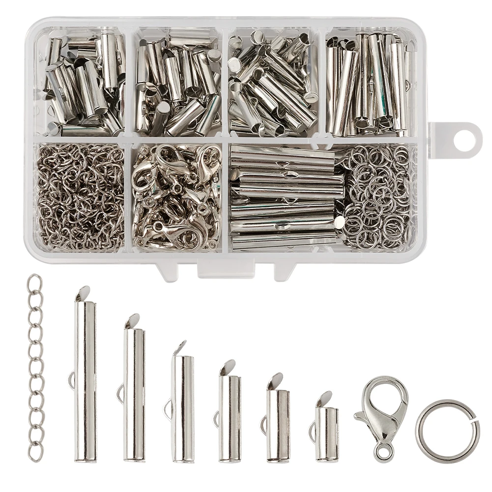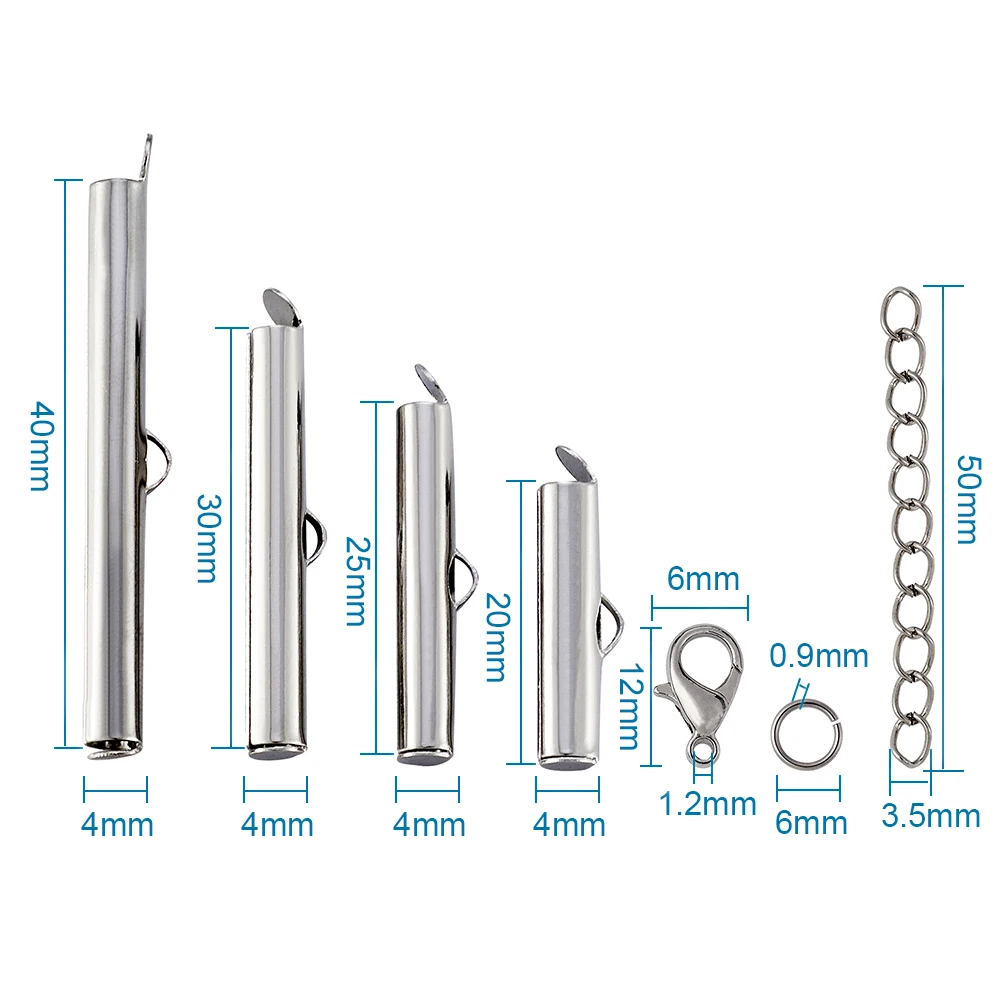 DIY Набор для создания украшений, с железной горкой на торцевых зажимных трубах, 304 кольца из нержавеющей стали, застежки из цинкового сплава с когтями Омаров и железными концами с цепочками-расширителями.Платиновый Размер:Конец застежки трубки: 5,5x20x4 мм, отверстие: 1 мм; 3,2 мм внутренняя Диаметр, 20 штук;Конец застежки трубки: 5,5x25x4 мм, отверстие: 1 мм; 3,2 мм внутренняя Диаметр, 20 штук;Конец застежки трубки: 5,5x30x4 мм, отверстие: 1 мм; 3,2 мм внутренняя Диаметр, 20 штук;Конец застежки трубки: 5,5x40x4 мм, отверстие: 1 мм; 3,2 мм внутренний диаметр, 20 штук;Соединительные кольца: 6x0,9 мм; Около 4,2 мм внутренний диаметр, 80 шт.;Коготь омара застежка: 12x6 мм, отверстие: 1,2 мм, 40 шт;Удлинитель для головок цепи: 50 х 3,5 мм, 40 нитей;Контейнер для хранения: 7,4x7,3x2,5 см (1 шт.).