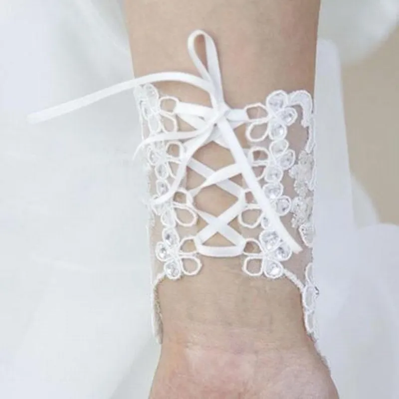 Недорогие короткие кружевные перчатки без пальцев, 1 пара, свадебные перчатки для невесты, выпускного, Вечерние перчатки для вождения, свадебные аксессуары