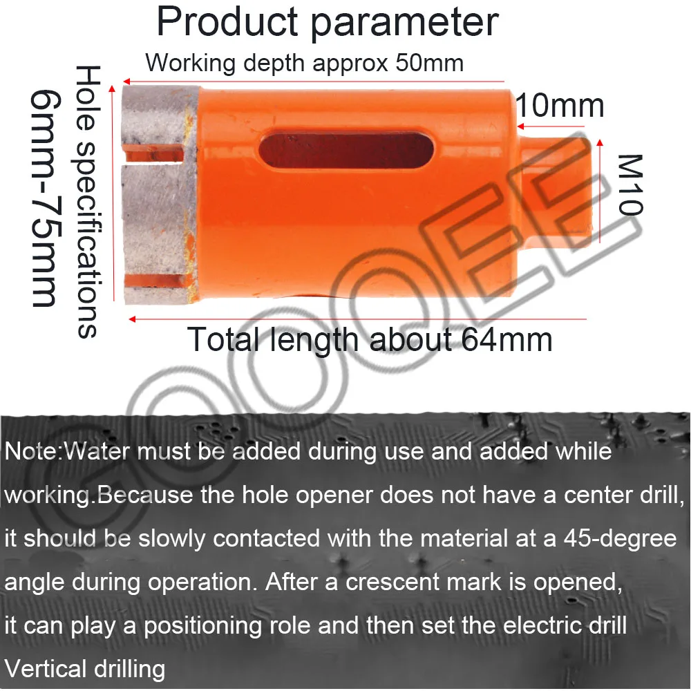Алмазное сверло M10 для сверления мрамора, гранита, кирпича, плитки, керамики, бетона