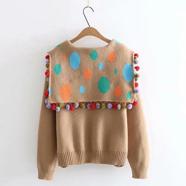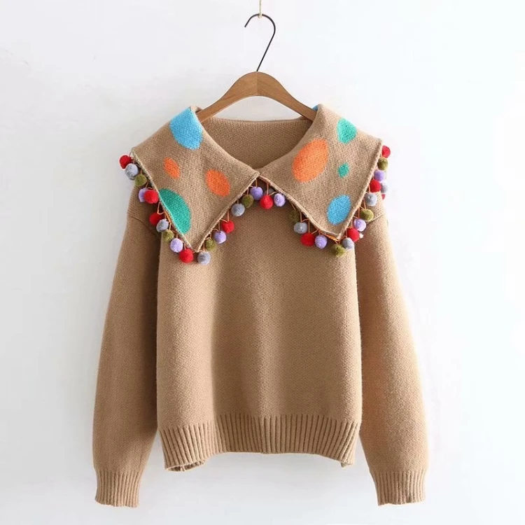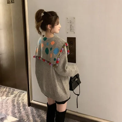 Женский свитер с бахромой H.SA, трикотажный пуловер серого и темно-синего цвета с отложным воротником