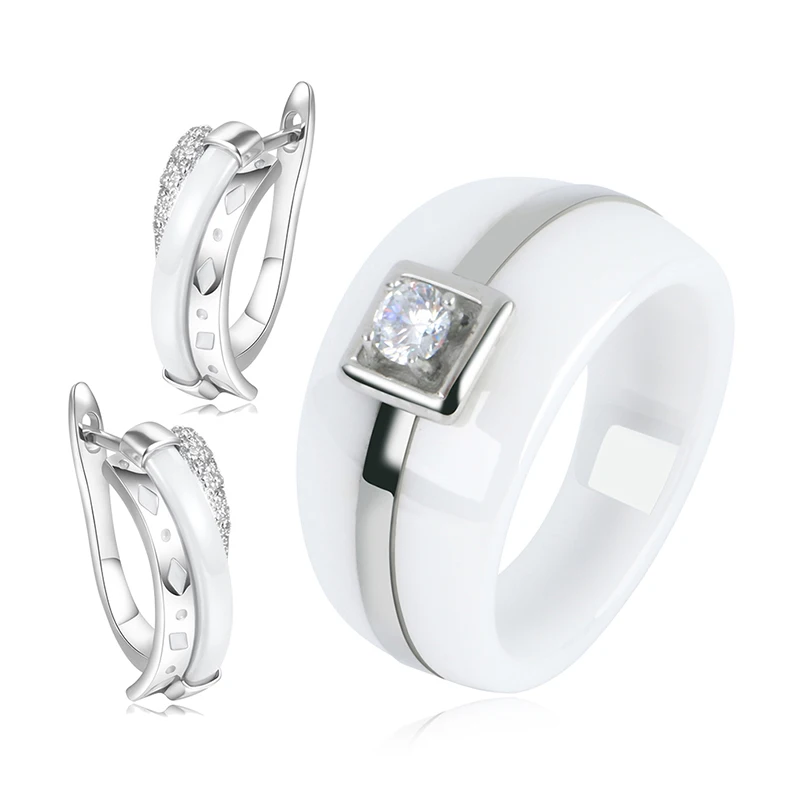 Набор женских керамических колец, серьги-гвоздики с фианитами