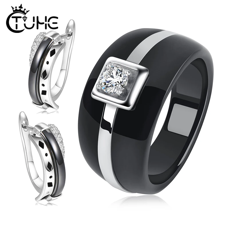 Набор украшений для женщин, набор украшений из керамических колец и сережек-гвоздиков с кубическим цирконием, подарочный набор