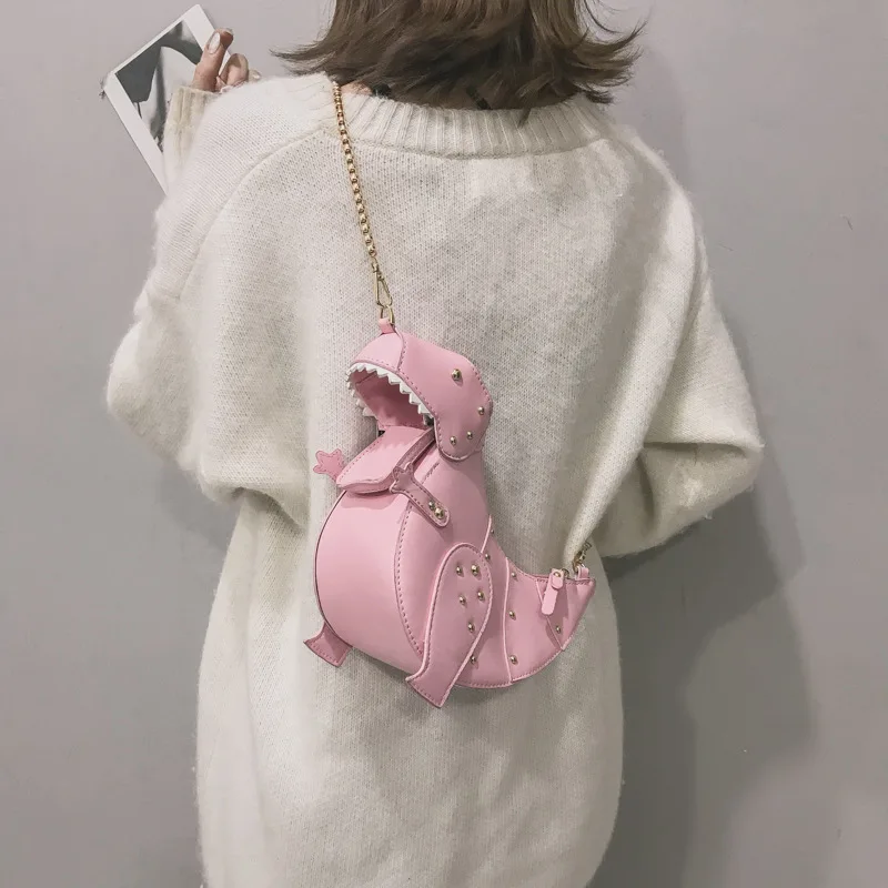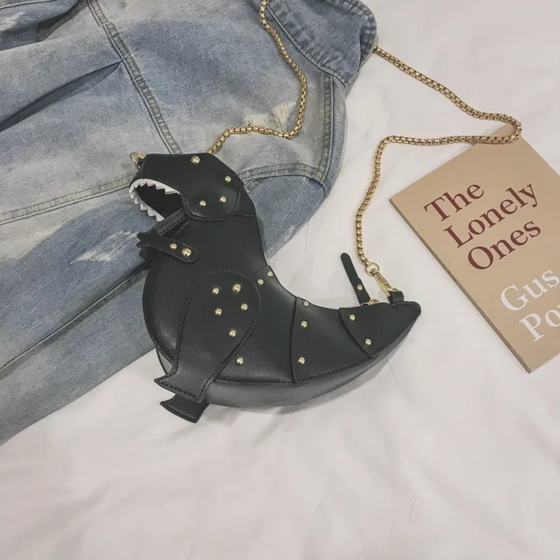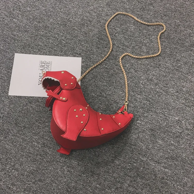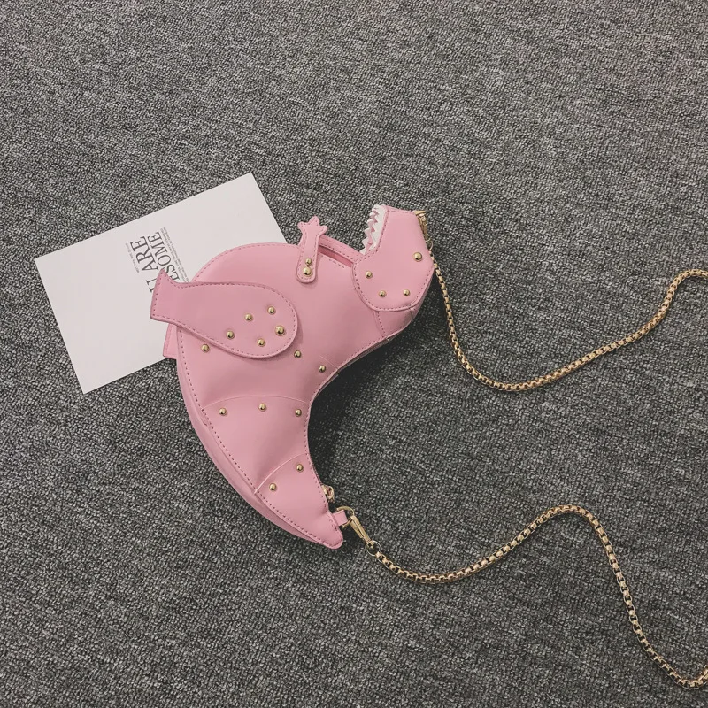 Модный дизайнерский кошелек с динозавром на цепочке из искусственной кожи с заклепками для девушек, сумка-тоут на плечо, женская сумка-мессенджер через плечо с клапаном
