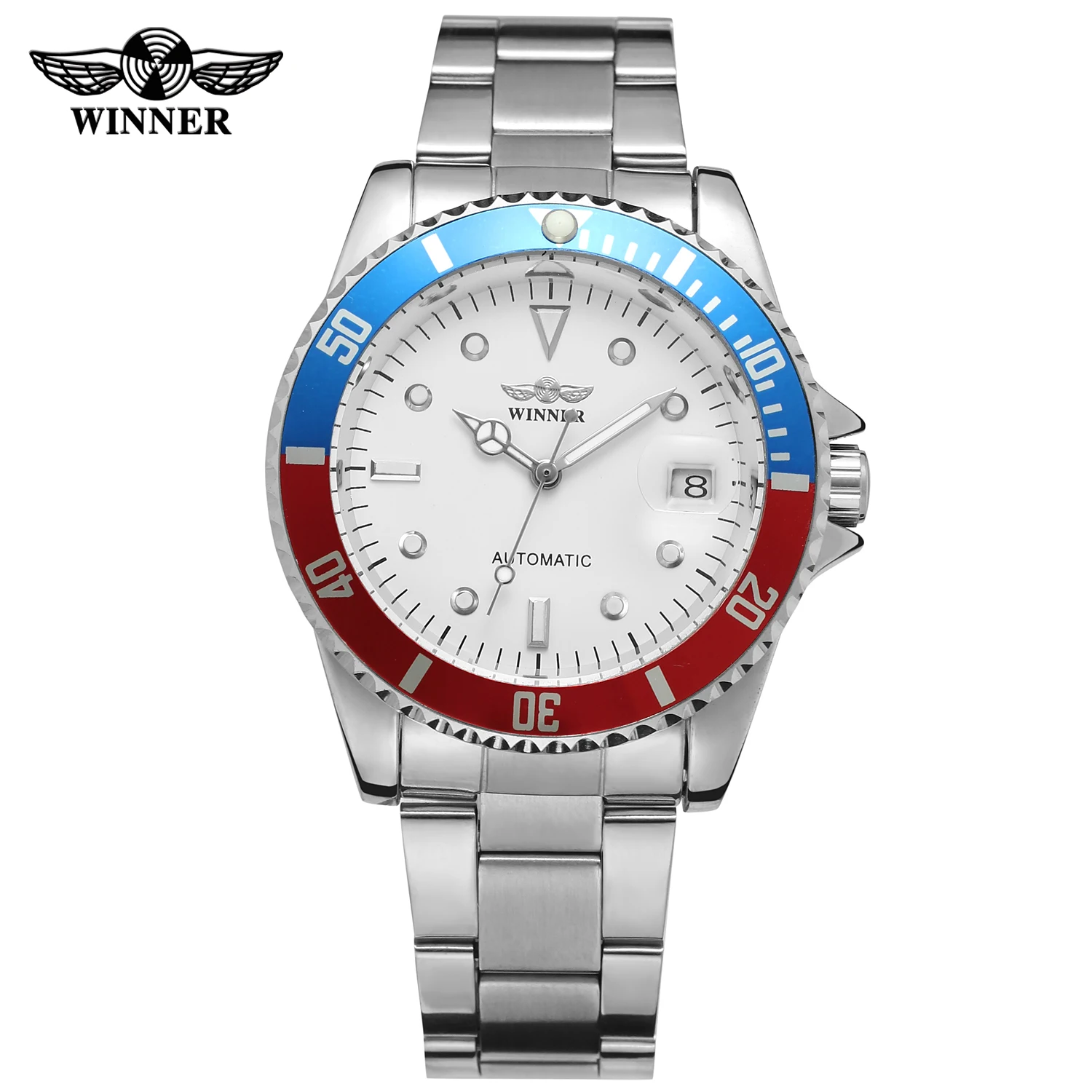 Часы наручные WINNER мужскиеженские Автоматические, модные деловые механические со стальным браслетом, с календарем