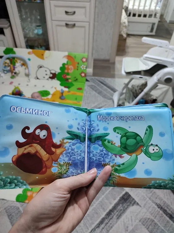 Доставка: скорее всего случайно, но в Беларусь за 2 недели это очень быстро. Качество: порадовало, тактильно на ощупь приятный материал, на первой страничке внутри спрятана пищалка (прикольная). Полное отсутствие каких либо химозных запахов. Книжка ничем не пахнет. Ребёнку очень понравилась. Очень хорошая вещь за небольшие деньги. Рекомендую! Продавцу ⭐⭐⭐⭐⭐