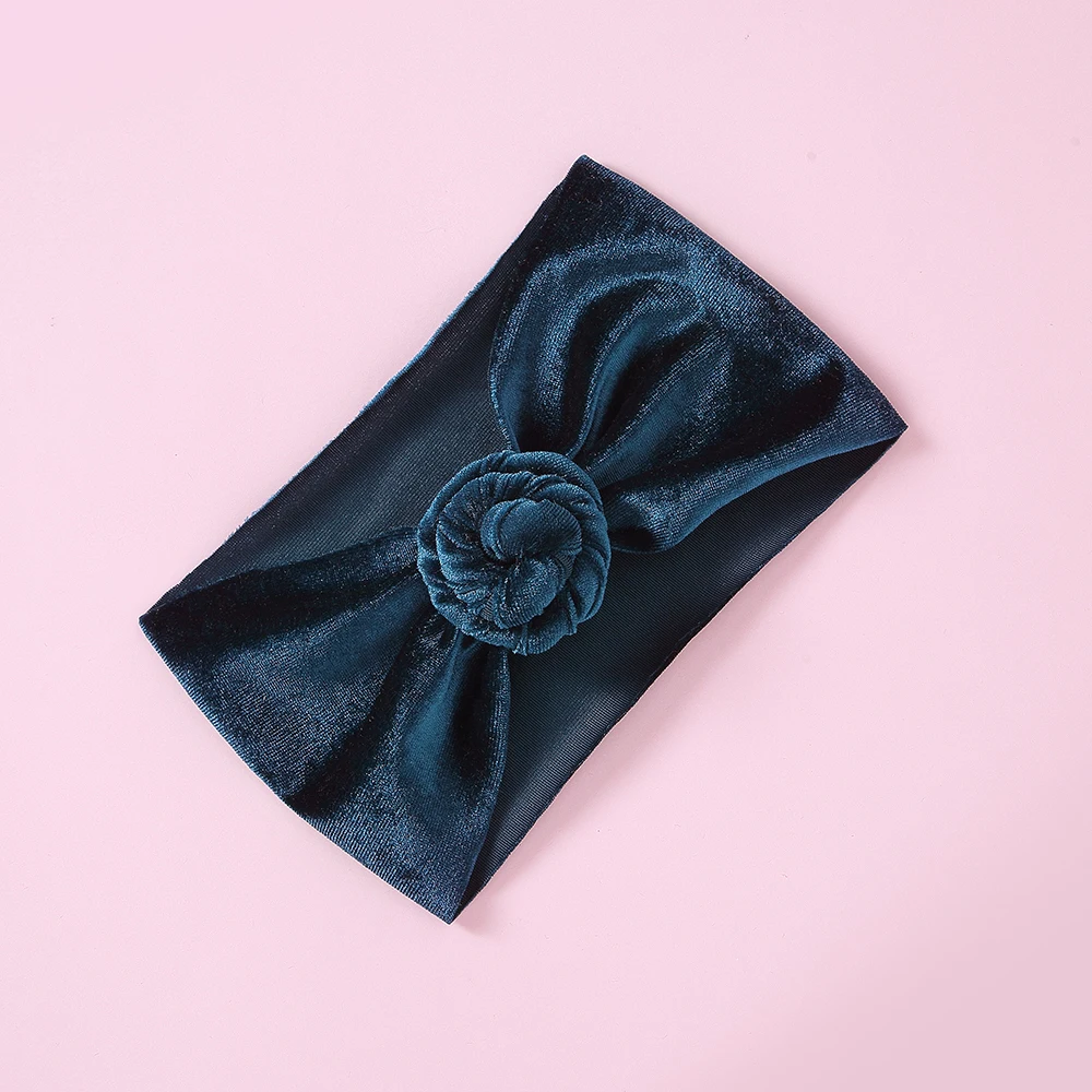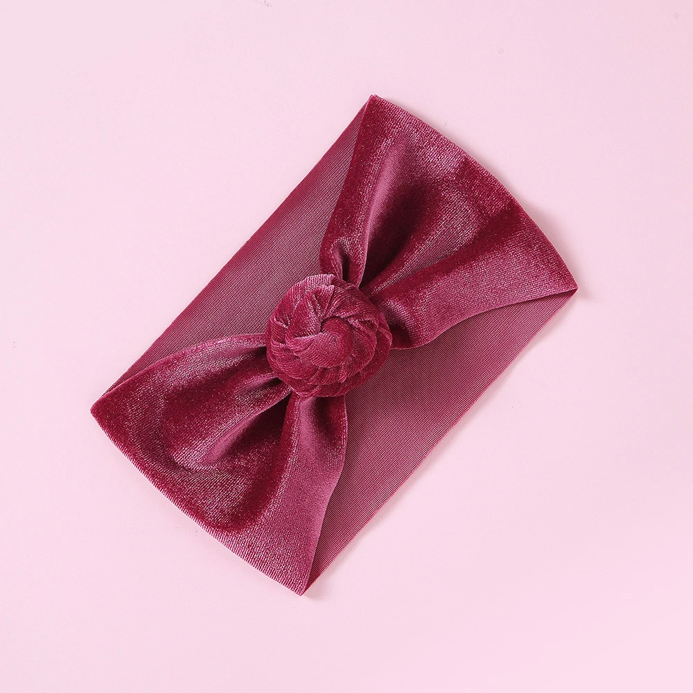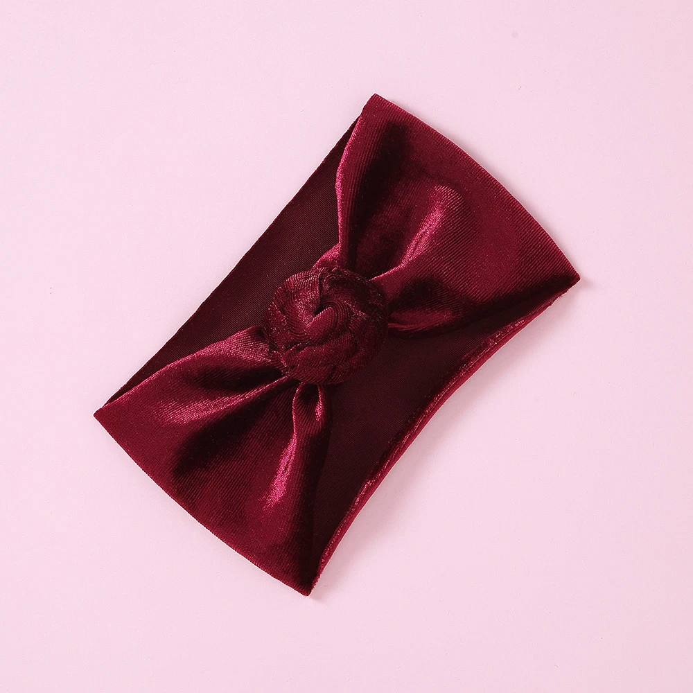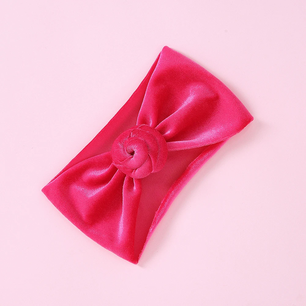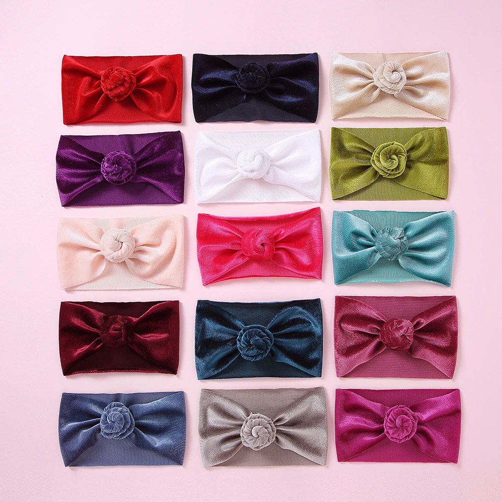 30 шт./партия, новинка, брендовая бархатная повязка на голову с пончиком для новорожденных и маленьких мальчиков и девочек, тюрбан, одноцветная повязка на голову с круглым узлом, детские повязки на голову