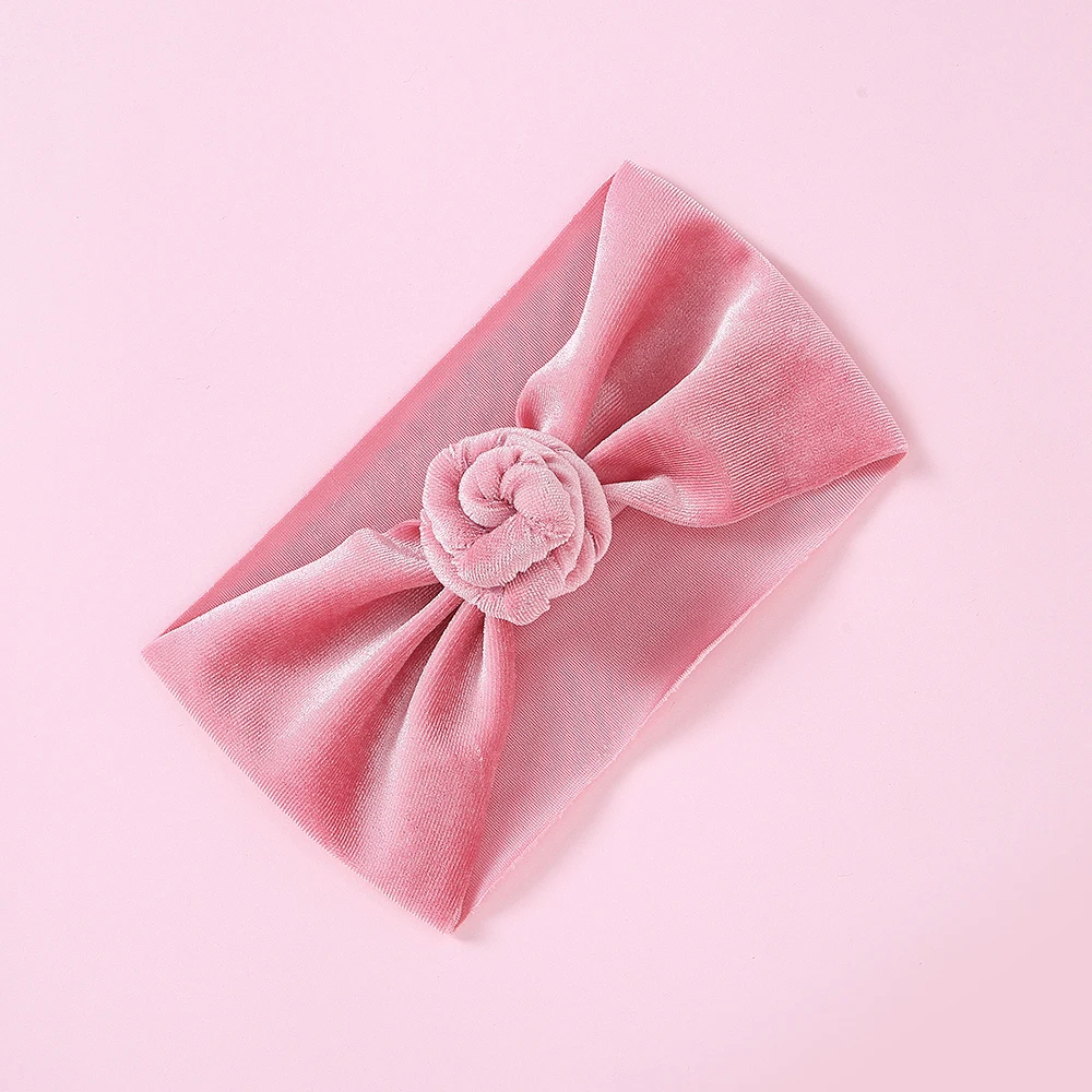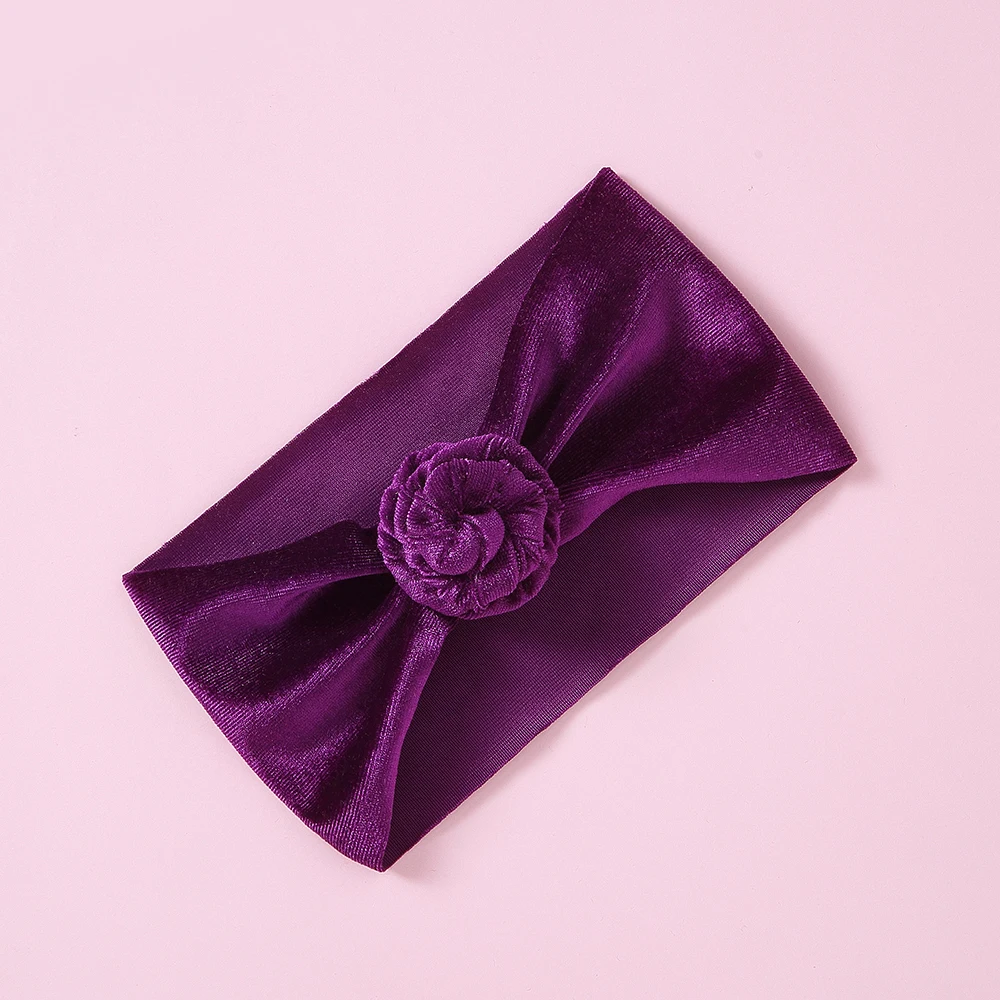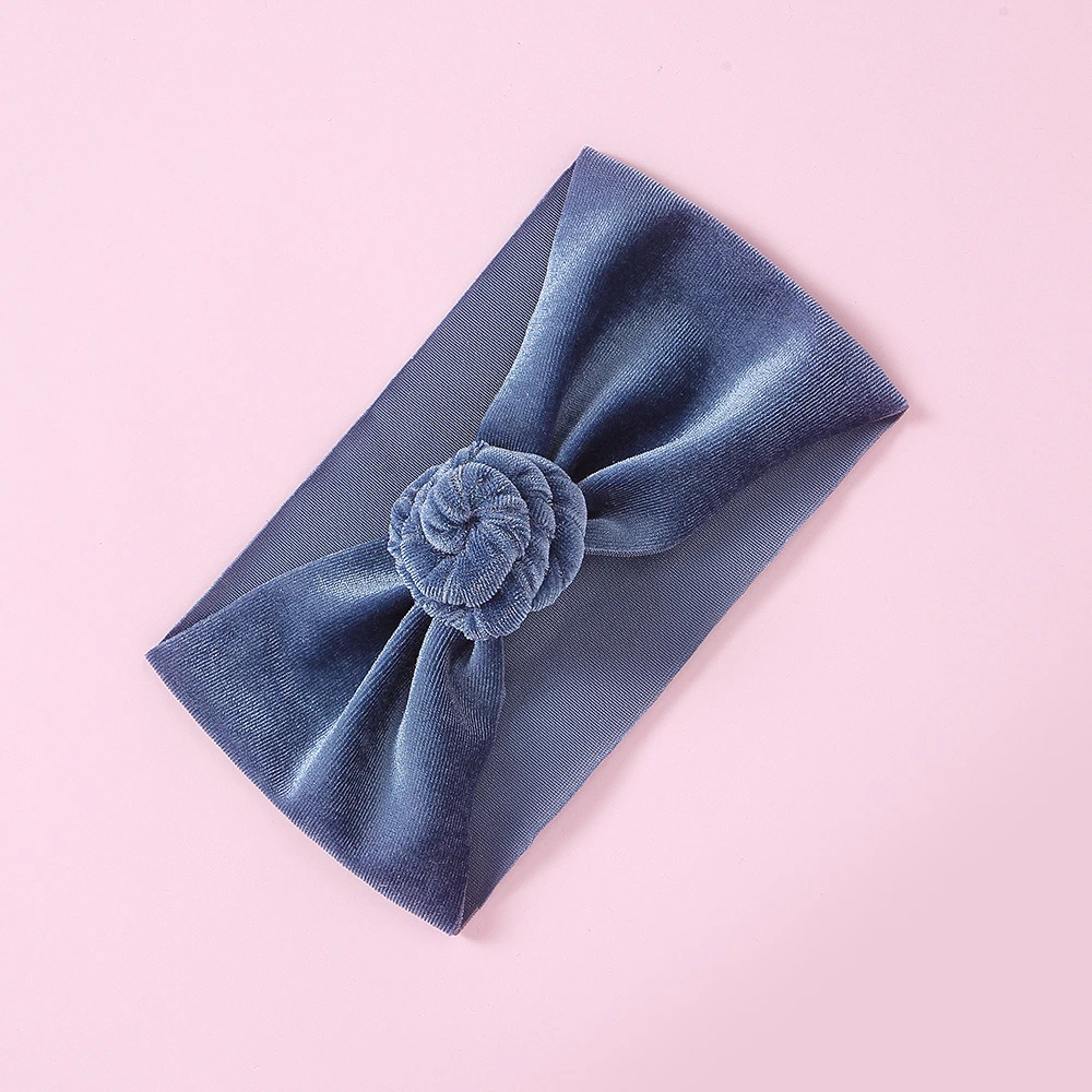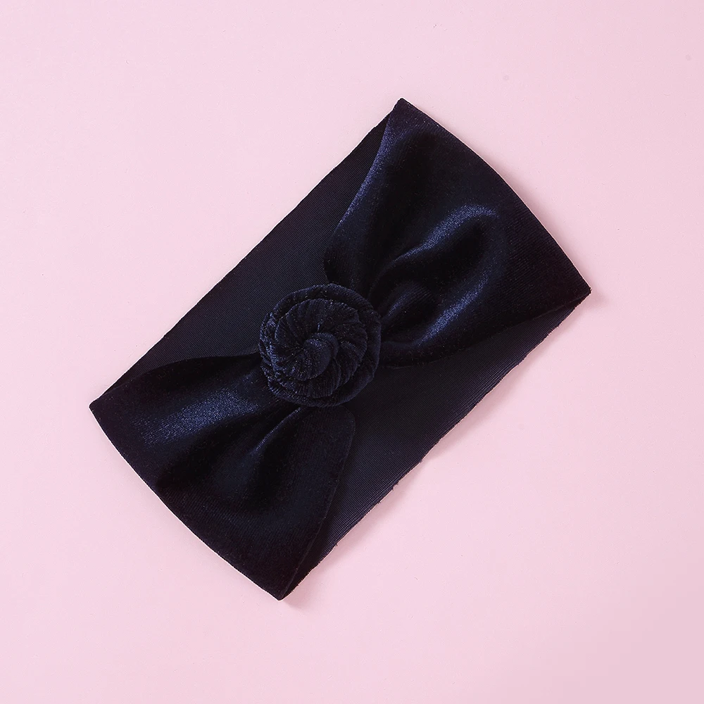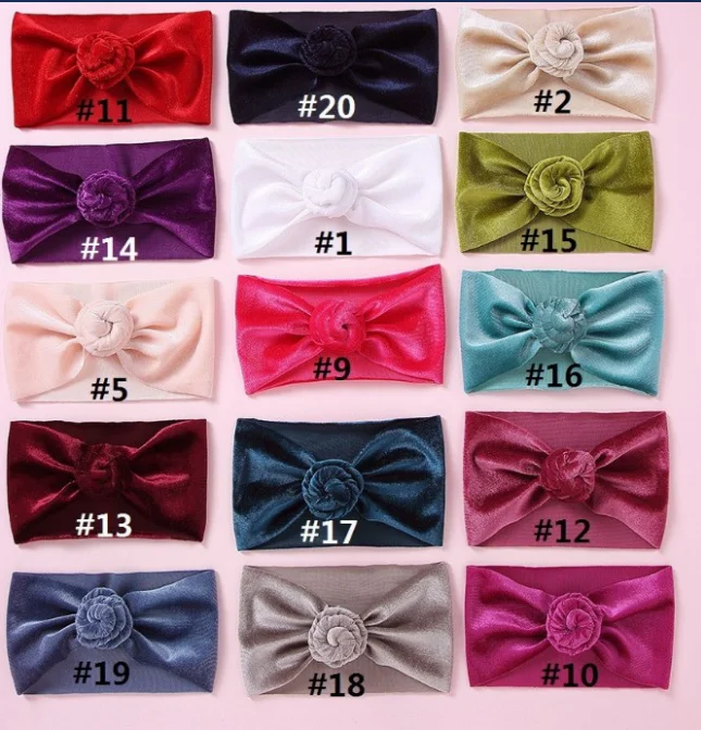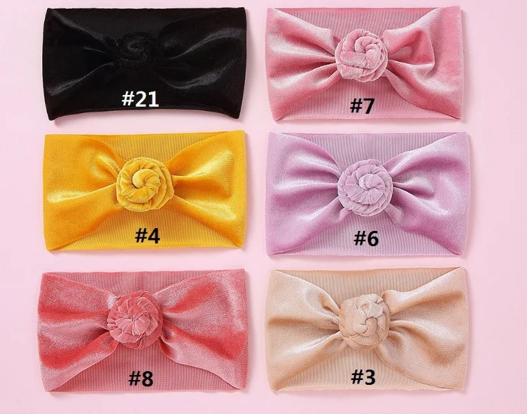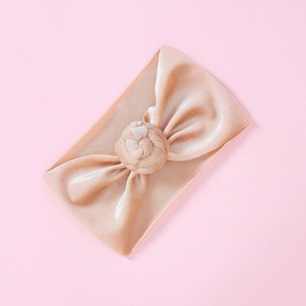 30 шт./партия, новинка, брендовая бархатная повязка на голову с пончиком для новорожденных и маленьких мальчиков и девочек, тюрбан, одноцветная повязка на голову с круглым узлом, детские повязки на голову