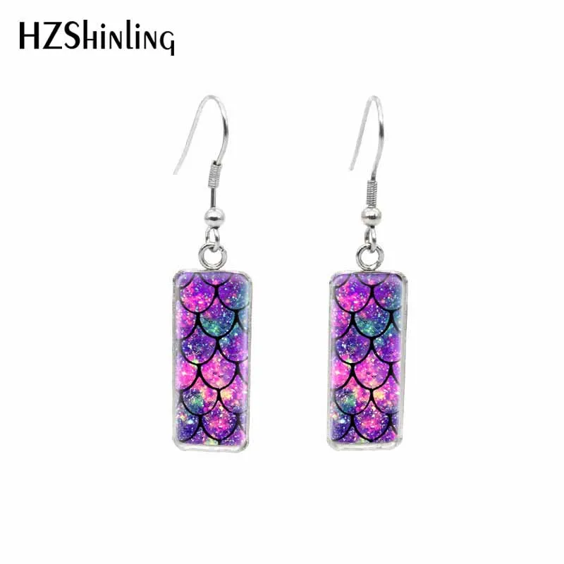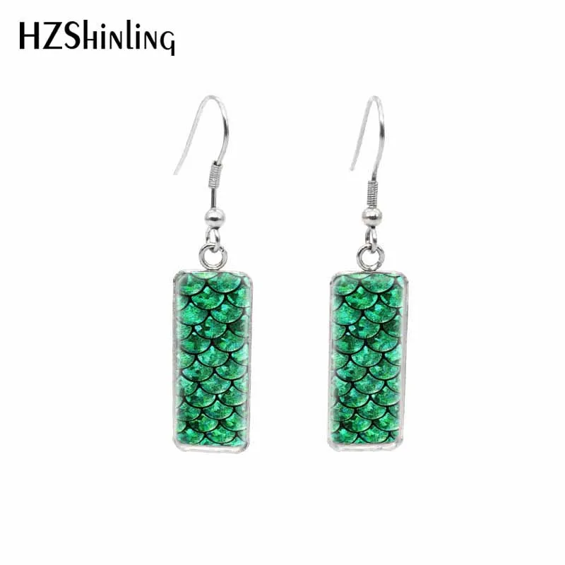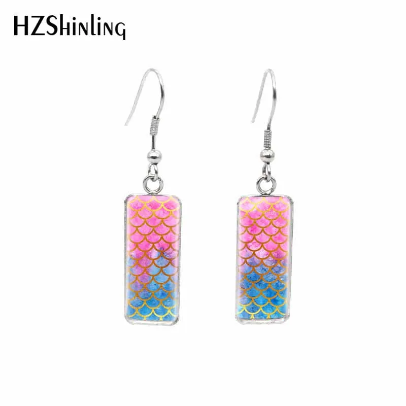 Серьги с радужными чешуями русалки, с рисунком в виде рыбного крючка, красивые прямоугольные серьги, стеклянные украшения ручной работы, 2019