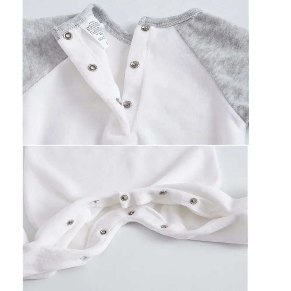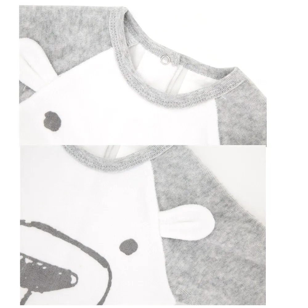 Детский бархатный комбинезон Honeyzone, зимний комбинезон для новорожденных мальчиков с длинным рукавом, с изображением медведя, серого и белого цветов, 0/3/6/9 м