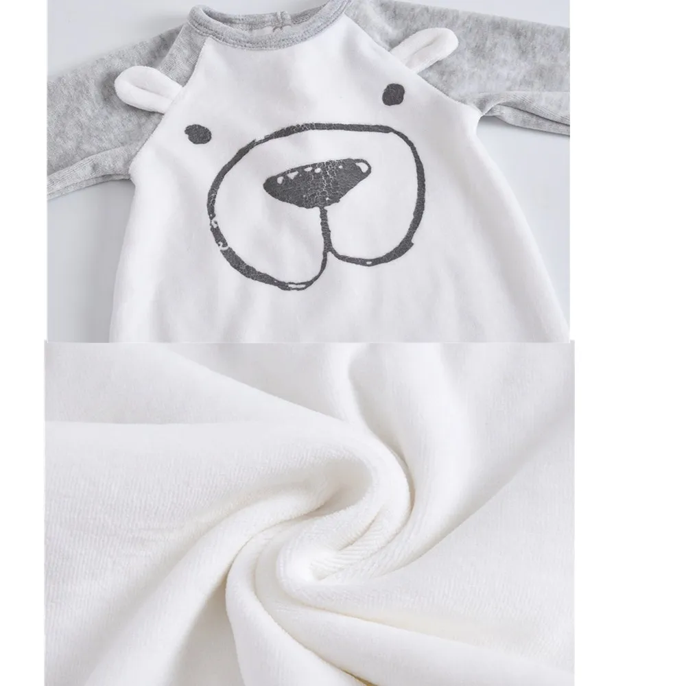 Комбинезон Honeyzone для новорожденных мальчиков, бархатный боди с длинным рукавом, с рисунком белого и серого медведя, зимний комбинезон для детей 0, 3, 6, 9 месяцев
