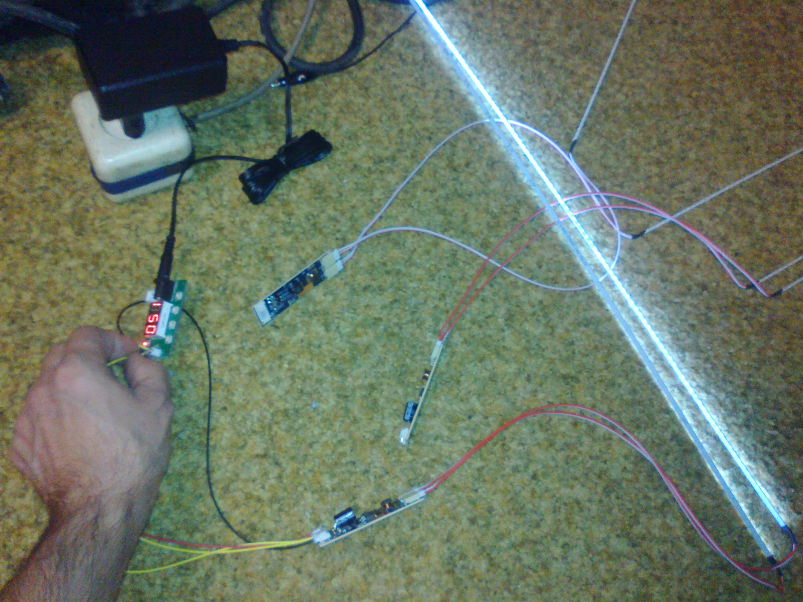установил в монитор 24 дюйма ещё 9 светодиодов пришлось отрезать, заработало все сразу как положено, регулируется яркость, жаль на лентах нет двухстороннего скотча пришлось повозиться не ного а так норм!