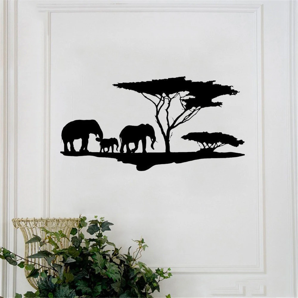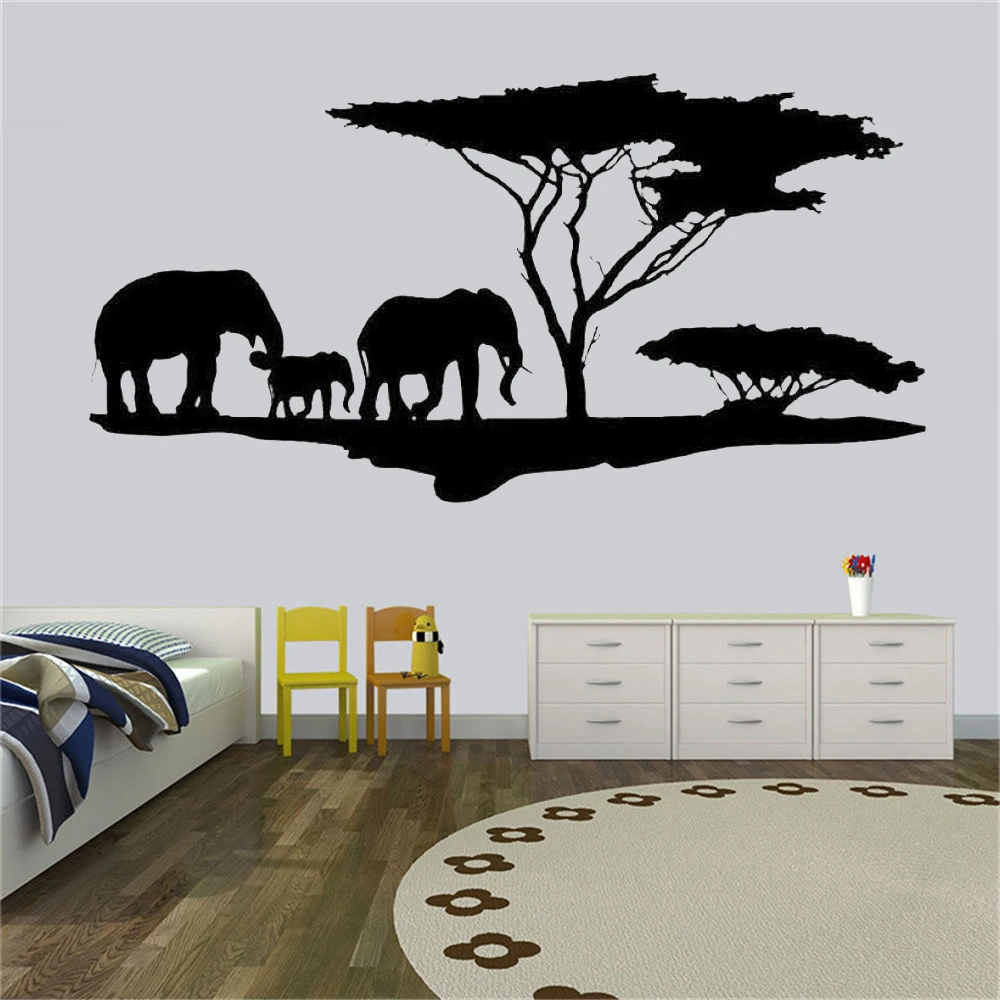 Домашняя Съемная наклейка Слон и дерево Ландшафтная карта, спальня гостиная диван декорация фона LW785