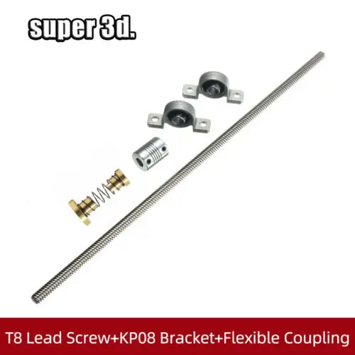 1 комплект, 3D принтер, T8, свинцовый винт, 8 мм, length150-500mm + анти-люфт гайка + KP08 kp08, опорный подшипник + муфта от 5 до 8 мм