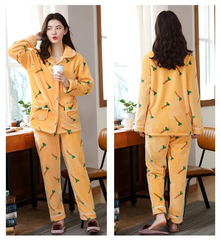 Женские пижамные комплекты, осенне-зимняя фланелевая теплая Пижама с мультяшным рисунком, Женская домашняя одежда, одежда для сна с животными, Милая женская пижама