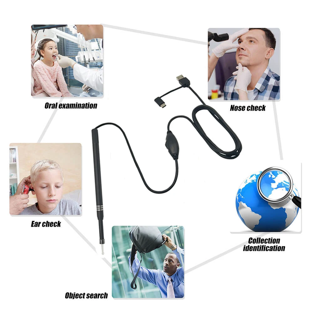 Этот usb-ушной эндоскоп является цельным дизайном, не требует дополнительного usb-адаптера, просто подключается к использованию. Примечание: ваше устройство должно поддерживать функции OTG и UVC. Эндоскоп для носа с помощью этого регулируемого светодиодного светильника, вы можете просматривать видео в реальном времени вашего уха и удалять Ушную раковину более полностью и безопасно. Эта цифровая камера для ушей с разрешением 1,3 мегапикселей 720P HD камера с подсветкой, которая может видеть вещи очень близко к уху, такие как у вас барабаны для ушей, ушная сера и любой предмет, который вы, возможно, впились в ухо. Ушная восковая камера подходит для взрослых и детей, семейного и профессионального использования. Медицинский отоскоп подходит для ежедневного ухода за чисткой, больные с ушами также могут наблюдать за ушным каналом.