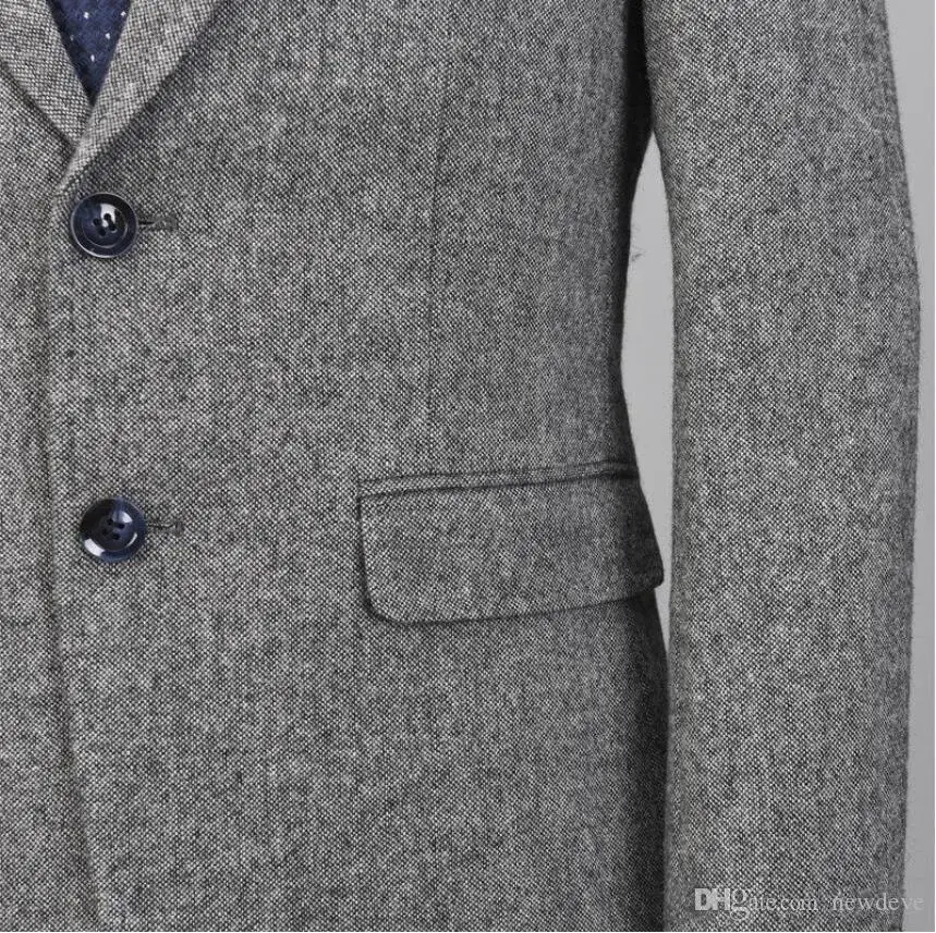 Новый свадебный смокинг, Мужской винтажный Свадебный костюм, 3 предмета, твид, 2 пуговицы, шерсть, серый, приталенный, подходит для жениха, одежда, куртка, штаны, жилет