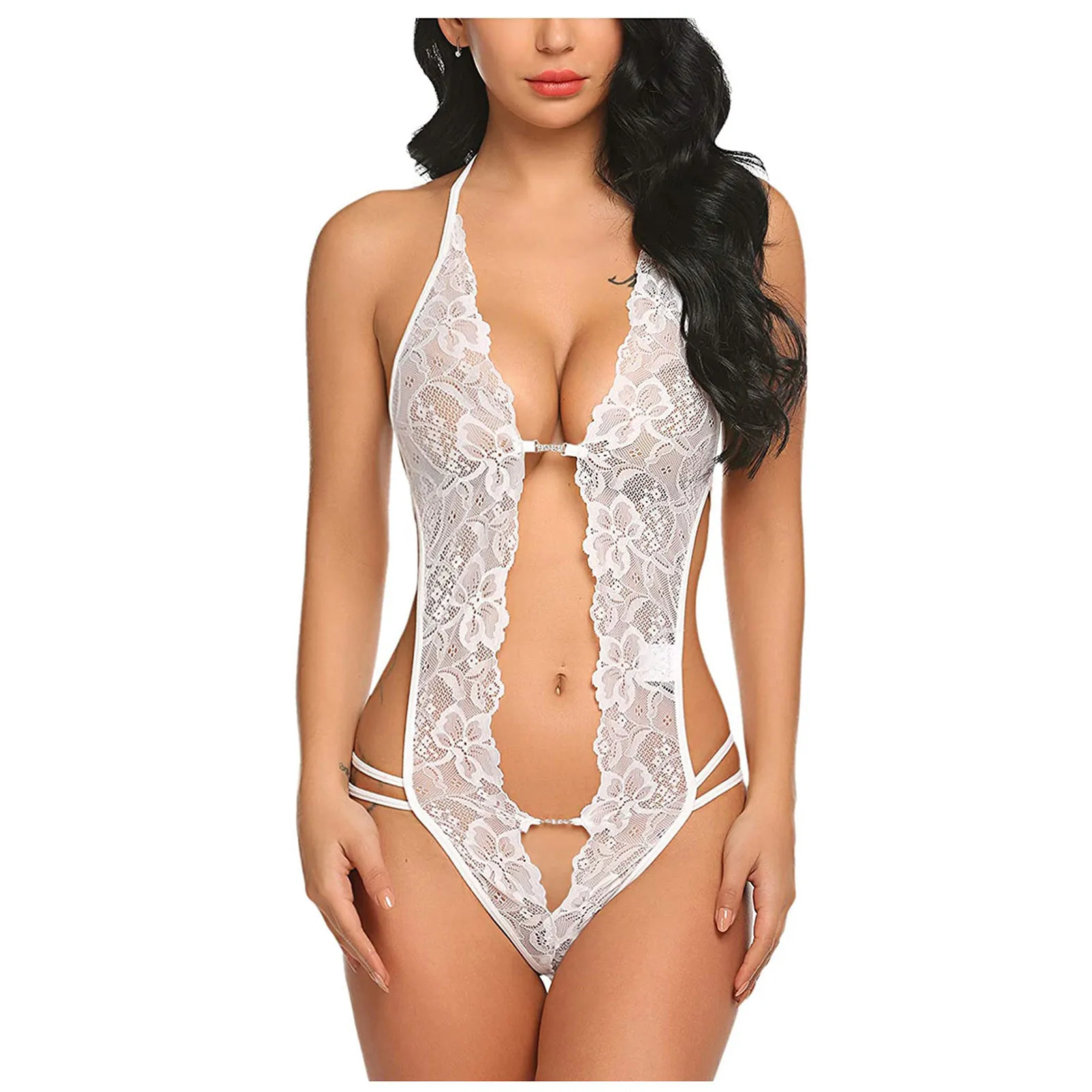Сексуальное чувственное женское белье, Прозрачное Кружевное боди с глубоким v-образным вырезом, сексуальное нижнее белье, эротичное белье-комбинация, сексуальный костюм с открытой спиной, ночное белье