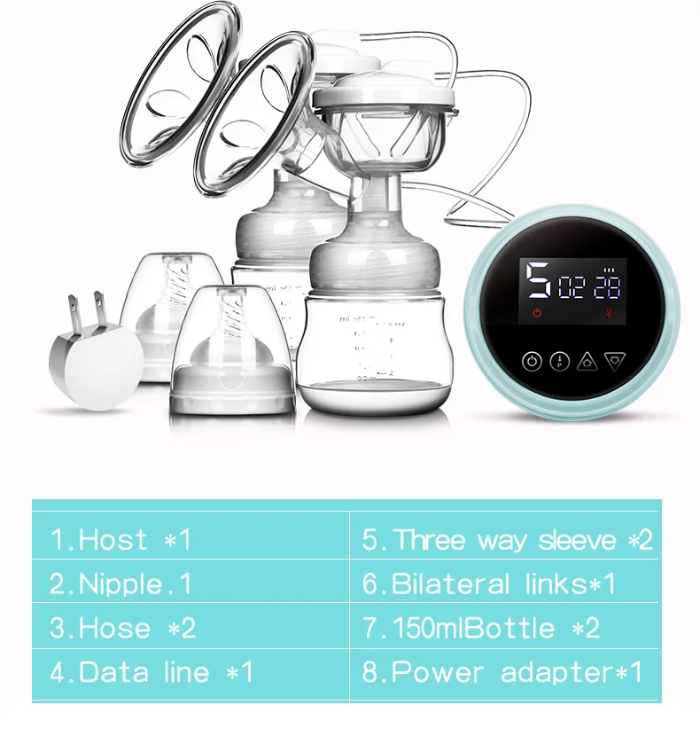 Двойной Электрический молокоотсос с сенсорным экраном, одиночный двойной всасывающий сосок, мощный автоматический молочный насос для кормления грудью