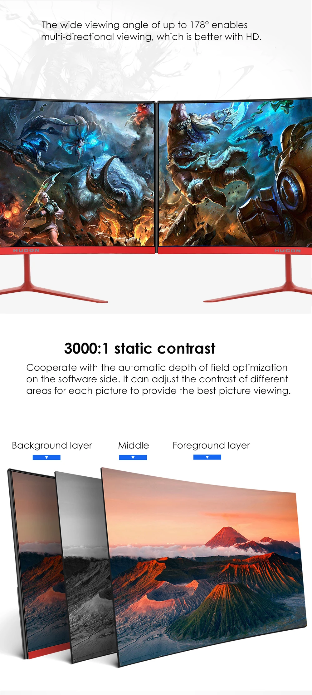 Монитор HUGON, 24 дюйма, 1920 1080p, TFTLCD, изогнутый, 75 Гц, HD, для игрового настольного компьютера, Q24Q27, интерфейс VGA